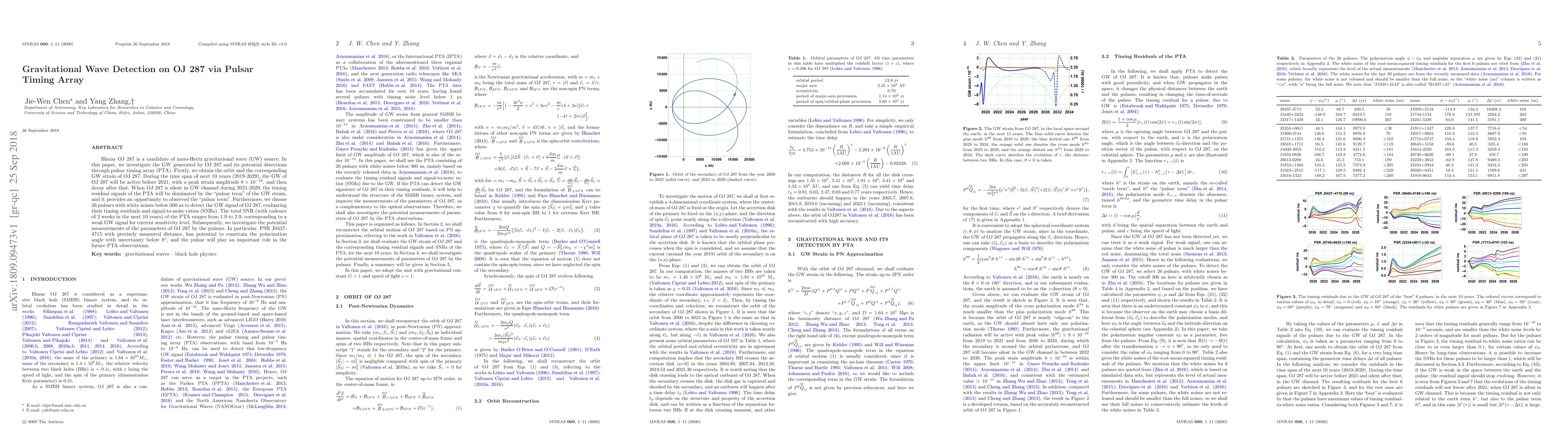 Researchers investigate the potential detection of gravitational waves from blazar OJ 287 using pulsar timing arrays, finding that a strong signal could constrain polarisation angle parameters with an uncertainty below $8^{ ext{o}}$.