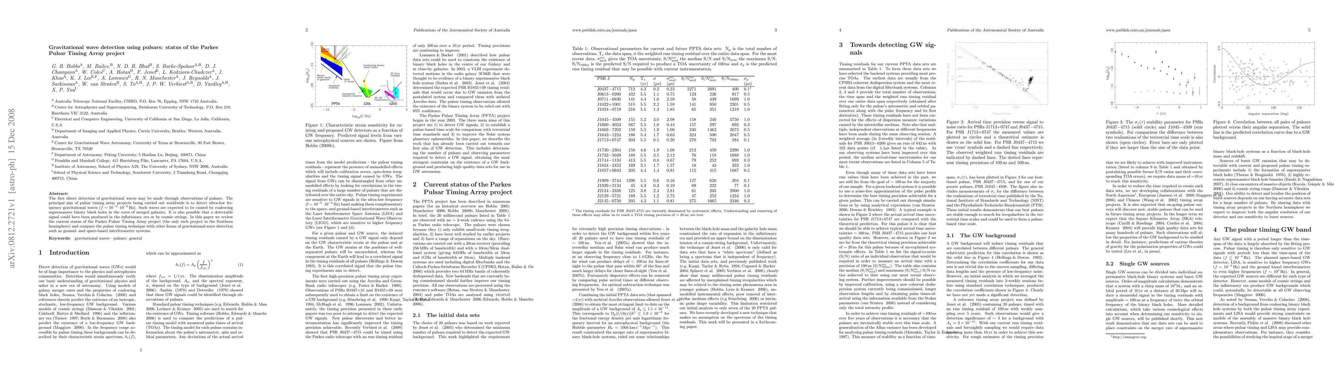 This paper reviews the current status of the Parkes Pulsar Timing Array project, which aims to detect ultra-low frequency gravitational waves from sources like supermassive binary black holes. It compares pulsar timing arrays to other gravitational-wave detection methods, highlighting their unique advantages in the Southern Hemisphere.
