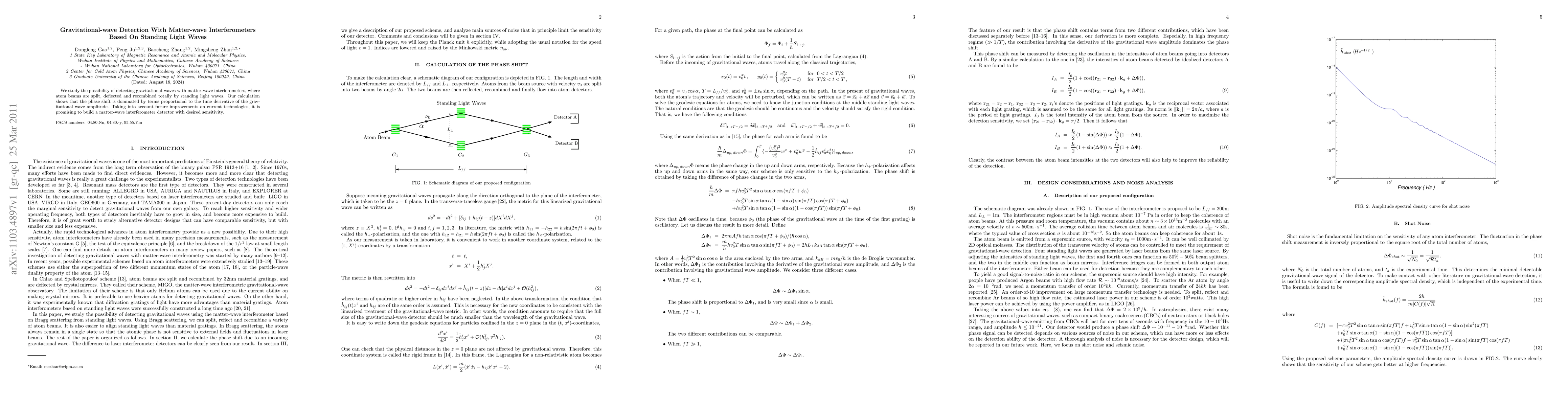 This paper explores the potential of matter-wave interferometers using standing light waves to detect gravitational waves, finding that phase shifts are primarily influenced by the time derivative of gravitational wave amplitude. With technological advancements, such detectors could achieve the necessary sensitivity.