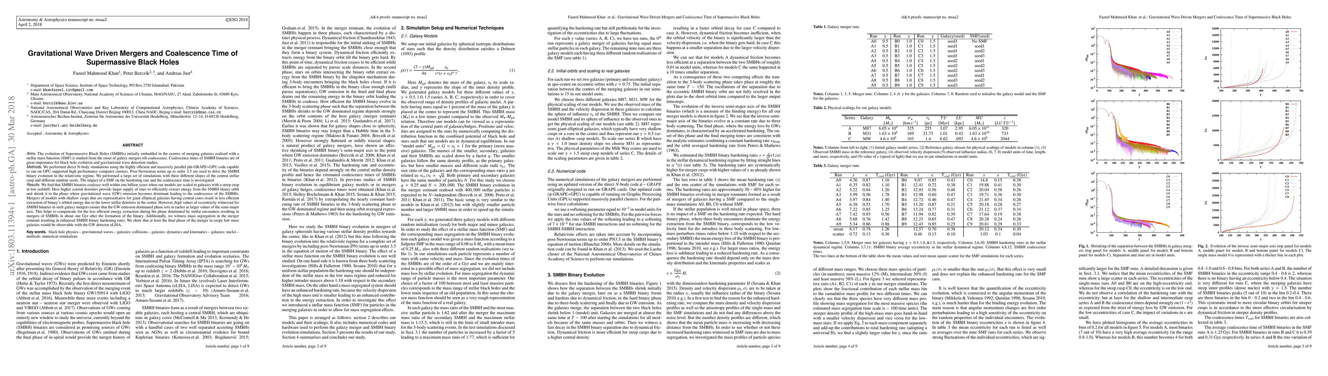 The evolution of Supermassive Black Holes (SMBHs) initially embedded in the centres of merging galaxies realised with a stellar mass function (SMF) is studied from the onset of galaxy mergers till coalescence. We performed a large set of direct N-body simulations with three different slopes of the central stellar cusp and different random seeds. Post Newtonian terms up to order 3.5 are used to drive the SMBH binary evolution in the relativistic regime. The impact of a SMF on the hardening rate and the coalescence time is investigated. We find that SMBH binaries coalesce well within one billion years when our models are scaled to galaxies with a steep cusp at low redshift. Here higher central densities provide larger supply of stars to efficiently extract energy from the SMBH binary orbit and shrink it to the phase where gravitational wave (GW) emission becomes dominant leading to the coalescence of the SMBHs. Mergers of models with shallow cusps that are representative for giant elliptical galaxies having central cores result in less efficient extraction of binary orbital energy due to the lower stellar densities in the centre. However, high values of eccentricity witnessed for SMBH binaries in such galaxy mergers ensure that the GW emission dominated phase sets in earlier at larger values of the semi-major axis. This helps to compensate for the less efficient energy extraction during the phase dominated by stellar encounters resulting in mergers of SMBHs in about one Gyr after the formation of the binary. Additionally, we witness mass segregation in the merger remnant resulting in enhanced SMBH binary hardening rates. We show that at least the final phase of the merger in cuspy low mass galaxies would be observable with the GW detector eLISA.