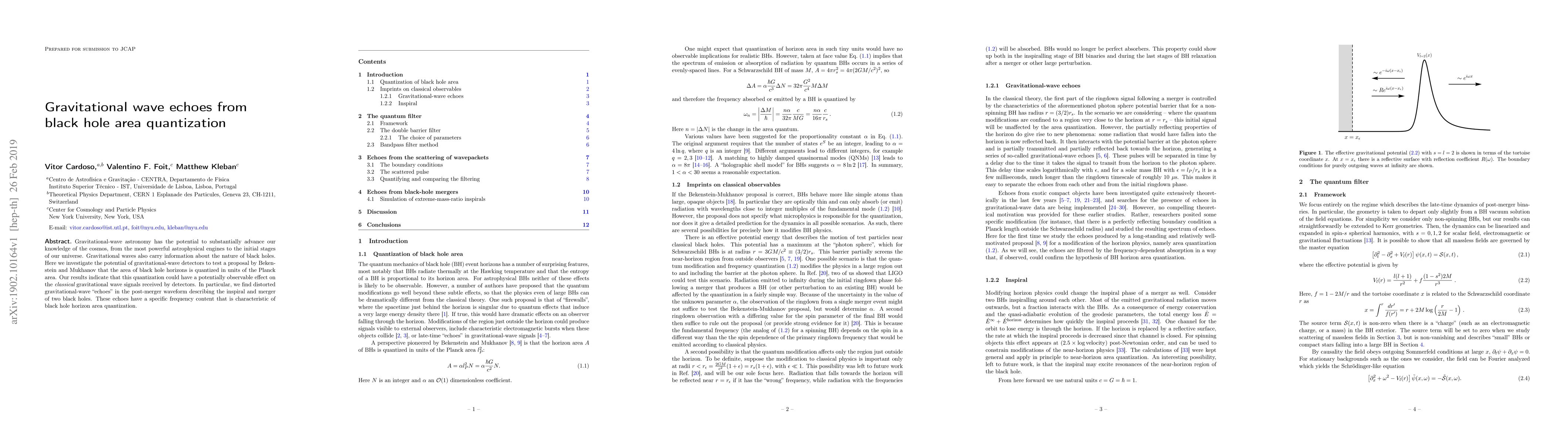 This paper explores how gravitational wave detectors could detect quantized black hole horizon areas, as proposed by Bekenstein and Mukhanov, through specific gravitational wave "echoes" in the post-merger signals of black hole mergers. The findings suggest that these echoes could provide observable evidence of the quantization of black hole area.