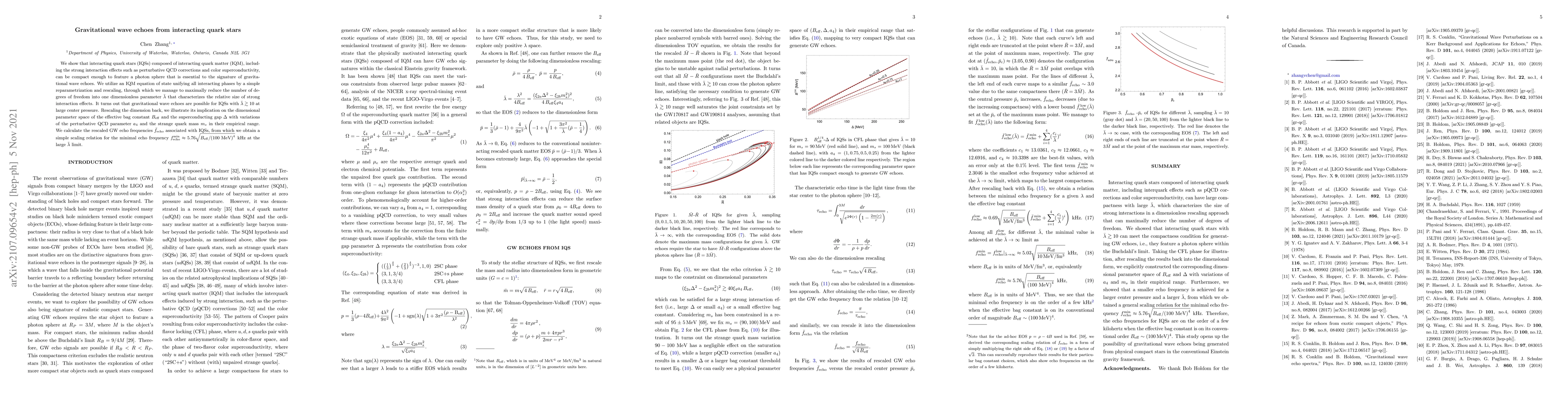 This paper investigates gravitational wave echoes from interacting quark stars (IQSs) composed of interacting quark matter (IQM), revealing that strong interaction effects can make IQSs compact enough to feature a photon sphere. The study derives a simple scaling relation for minimal echo frequencies, showing that echoes are possible for IQSs with a dimensionless parameter $\bar{\lambda}\gtrsim10$.