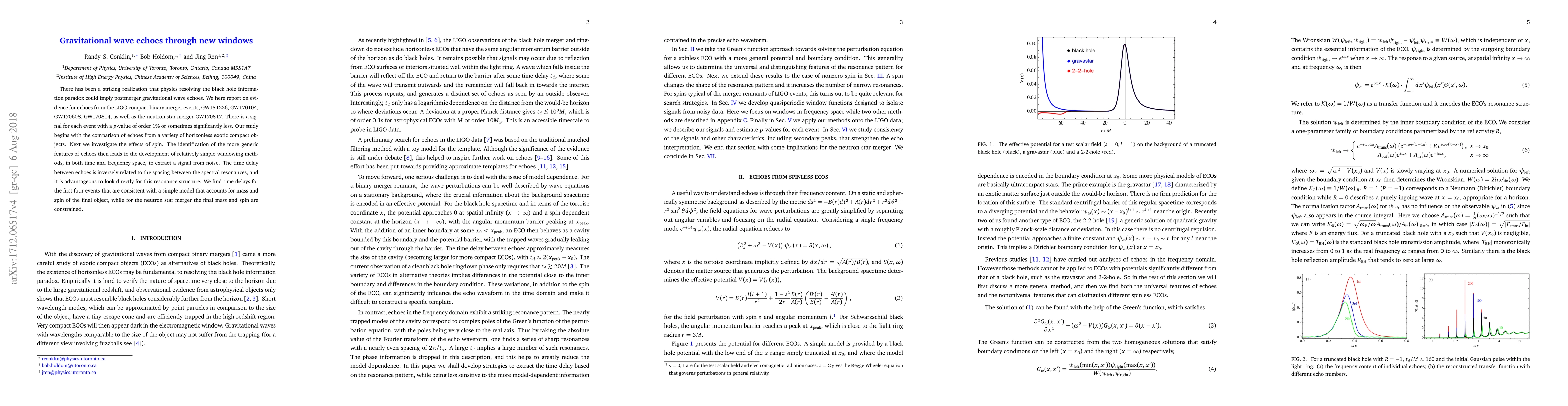 There has been a striking realization that physics resolving the black hole information paradox could imply postmerger gravitational wave echoes. We here report on evidence for echoes from the LIGO compact binary merger events, GW151226, GW170104, GW170608, GW170814, as well as the neutron star merger GW170817. There is a signal for each event with a $p$-value of order 1% or sometimes significantly less. Our study begins with the comparison of echoes from a variety of horizonless exotic compact objects. Next we investigate the effects of spin. The identification of the more generic features of echoes then leads to the development of relatively simple windowing methods, in both time and frequency space, to extract a signal from noise. The time delay between echoes is inversely related to the spacing between the spectral resonances, and it is advantageous to look directly for this resonance structure. We find time delays for the first four events that are consistent with a simple model that accounts for mass and spin of the final object, while for the neutron star merger the final mass and spin are constrained.