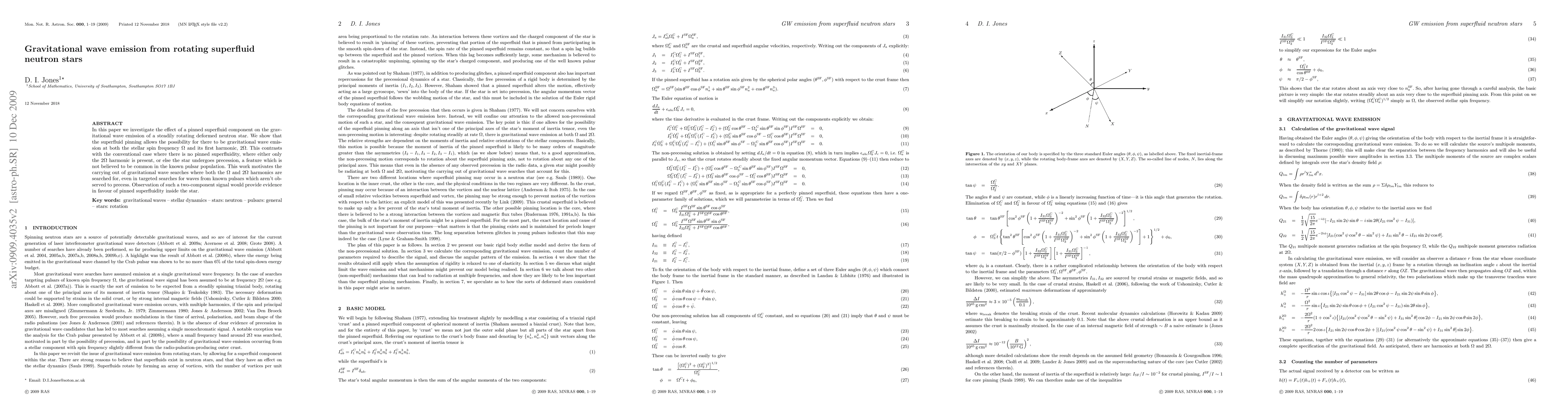 This paper explores how pinned superfluid components in rotating neutron stars can lead to gravitational wave emissions at both the spin frequency and its first harmonic, contrasting with conventional models. It suggests targeted searches for both $\Omega$ and $2\Omega$ harmonics to detect evidence of pinned superfluidity.