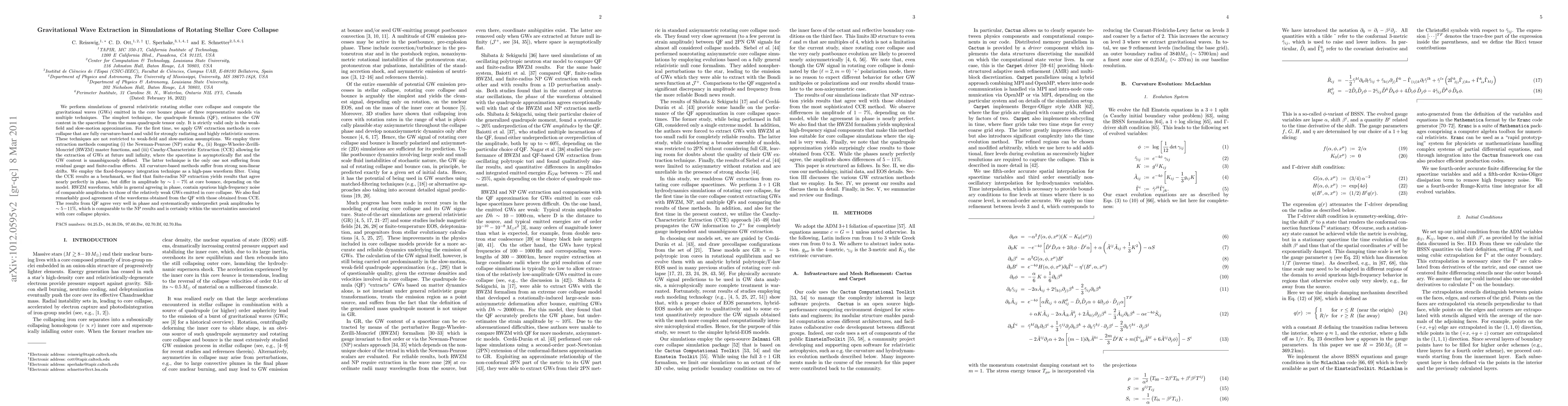 Researchers simulate rotating stellar core collapse and extract gravitational waves using three methods, finding that a curvature-based approach yields accurate results, while simpler methods produce slightly incorrect amplitudes.
