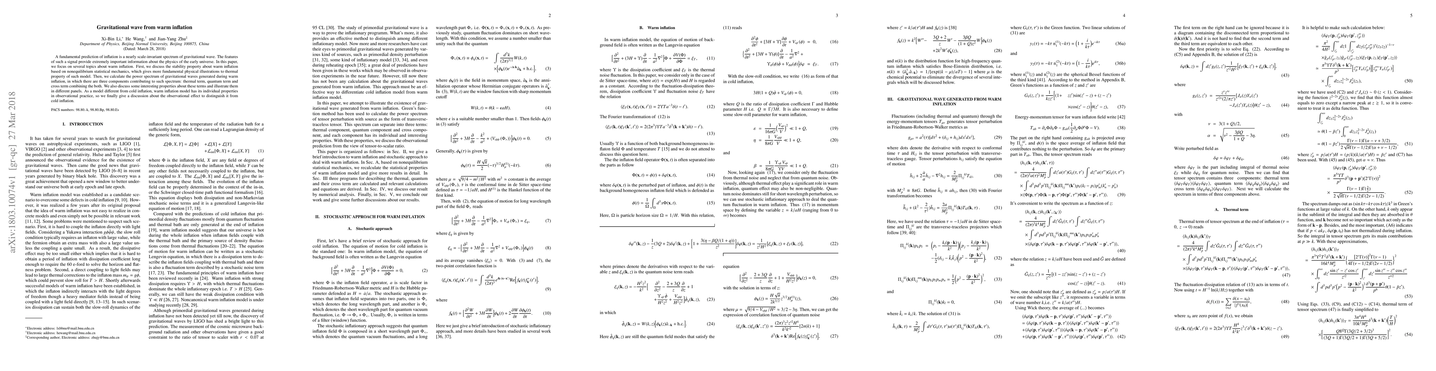 This paper explores gravitational wave signals from warm inflation, analyzing their stability and power spectrum. It identifies three components contributing to the spectrum: thermal, quantum, and cross terms, and discusses observational differences from cold inflation.