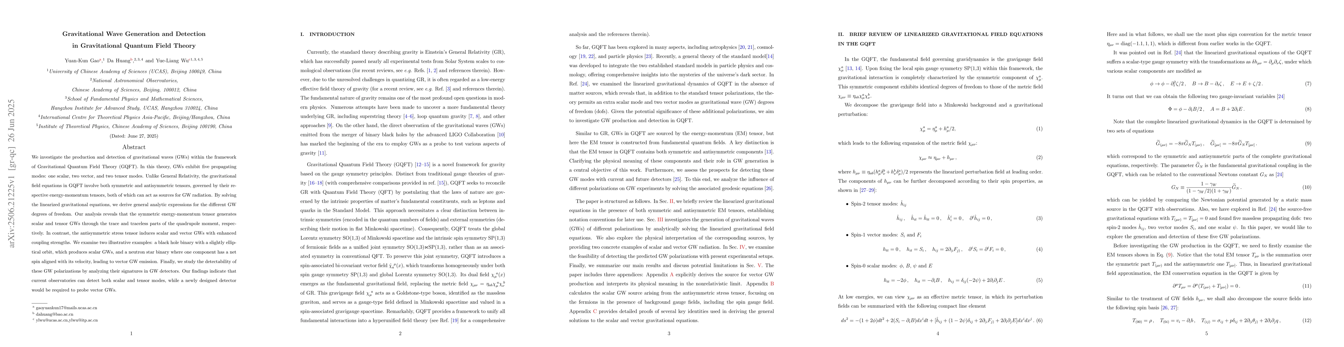The paper provides a comprehensive analytic derivation of scalar, vector, and tensor GW modes within GQFT, highlighting their sources, coupling strengths, and differences from classical GR predictions.