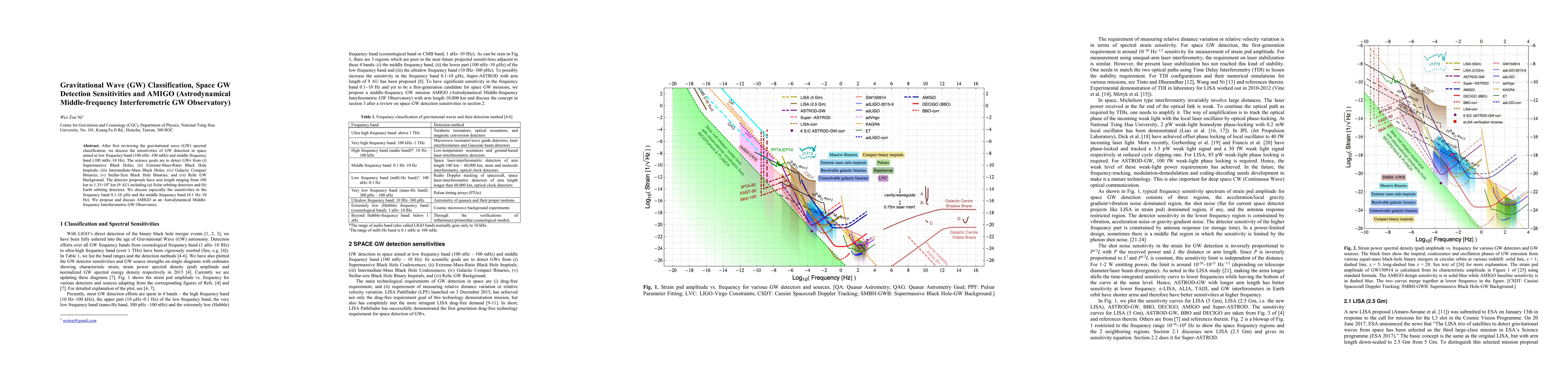 This paper reviews gravitational wave spectral classification and discusses the detection sensitivities of space-based GW observatories targeting low-frequency (100 nHz-100 mHz) and middle-frequency (100 mHz-10 Hz) bands. It proposes AMIGO, an Astrodynamical Middle-frequency Interferometric GW Observatory, to detect GWs from various astrophysical sources.