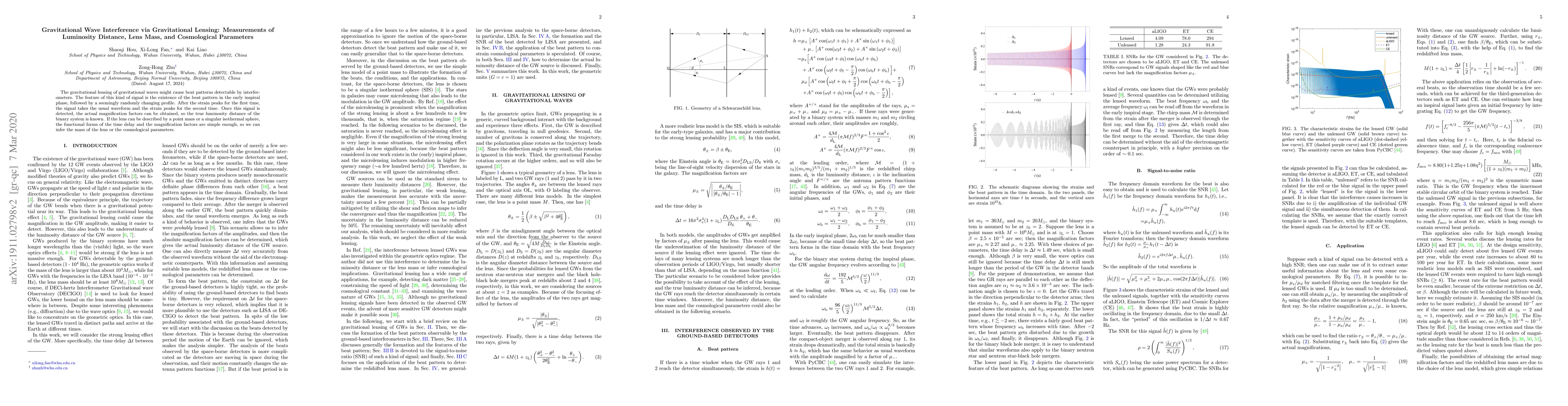 Researchers propose a new method to detect gravitational wave interference via gravitational lensing, allowing for precise measurements of luminosity distance, lens mass, and cosmological parameters.