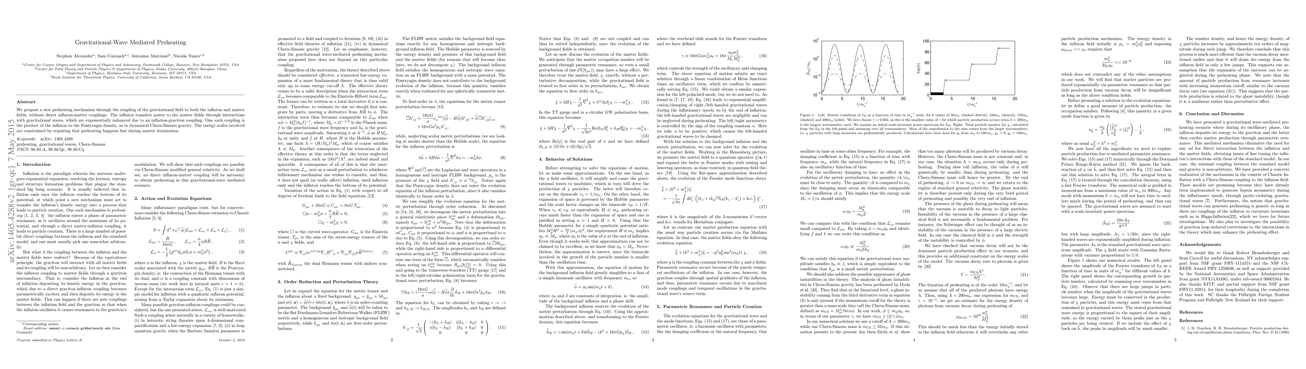 This paper introduces a novel preheating mechanism where the inflaton transfers energy to matter fields via gravitational waves, driven by an inflation-graviton coupling, specifically through the inflaton-Pontryagin density interaction. The process is efficient and occurs rapidly during the matter-dominated phase.