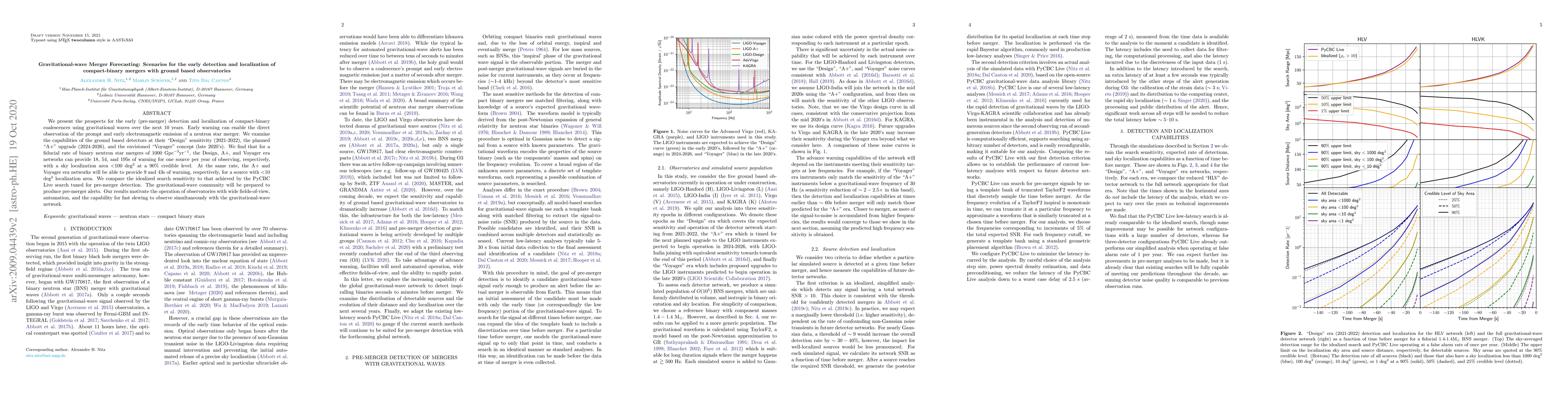 Researchers forecast that ground-based observatories can detect compact-binary mergers with gravitational waves 18-195 seconds before the merger, providing early warnings for direct observation of neutron star mergers.