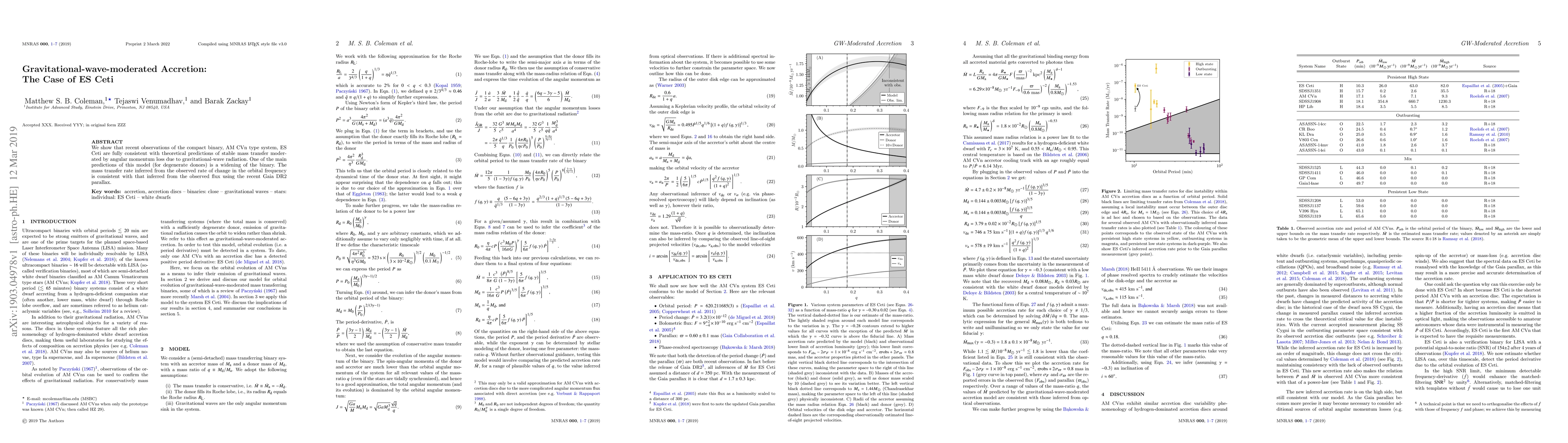 We show that recent observations of the compact binary, AM CVn type system, ES Ceti are fully consistent with theoretical predictions of stable mass transfer moderated by angular momentum loss due to gravitational-wave radiation. One of the main predictions of this model (for degenerate donors) is a widening of the binary. The mass transfer rate inferred from the observed rate of change in the orbital frequency is consistent with that inferred from the observed flux using the recent Gaia DR2 parallax