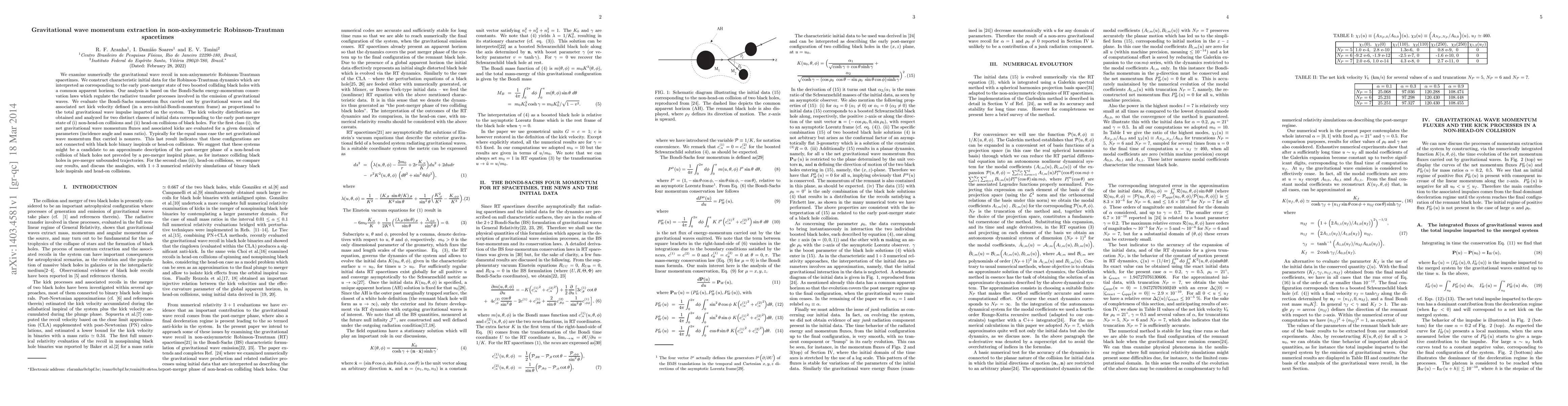 This paper numerically investigates gravitational wave recoil in non-axisymmetric Robinson-Trautman spacetimes, focusing on the momentum flux carried by gravitational waves and the resulting net kick velocity. The study compares kick velocities from non-head-on and head-on black hole collisions, suggesting non-axisymmetric configurations could describe post-merger states of non-head-on collisions.
