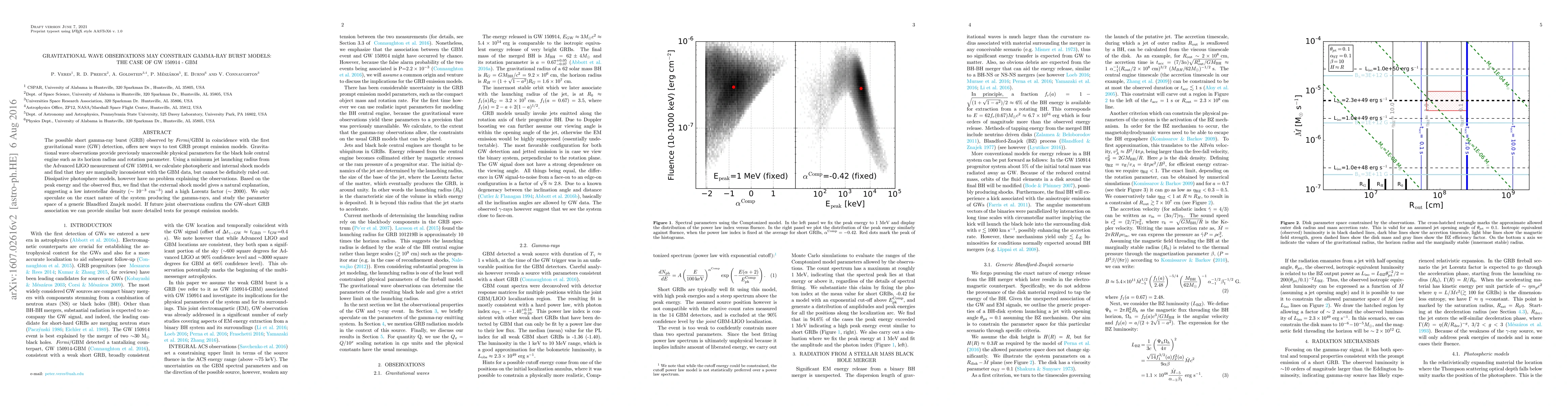 The possible short gamma-ray burst (GRB) observed by {\it Fermi}/GBM in coincidence with the first gravitational wave (GW) detection, offers new ways to test GRB prompt emission models. Gravitational wave observations provide previously unaccessible physical parameters for the black hole central engine such as its horizon radius and rotation parameter. Using a minimum jet launching radius from the Advanced LIGO measurement of GW~150914, we calculate photospheric and internal shock models and find that they are marginally inconsistent with the GBM data, but cannot be definitely ruled out. Dissipative photosphere models, however have no problem explaining the observations. Based on the peak energy and the observed flux, we find that the external shock model gives a natural explanation, suggesting a low interstellar density ($\sim 10^{-3}$ cm$^{-3}$) and a high Lorentz factor ($\sim 2000$). We only speculate on the exact nature of the system producing the gamma-rays, and study the parameter space of a generic Blandford Znajek model. If future joint observations confirm the GW-short GRB association we can provide similar but more detailed tests for prompt emission models.