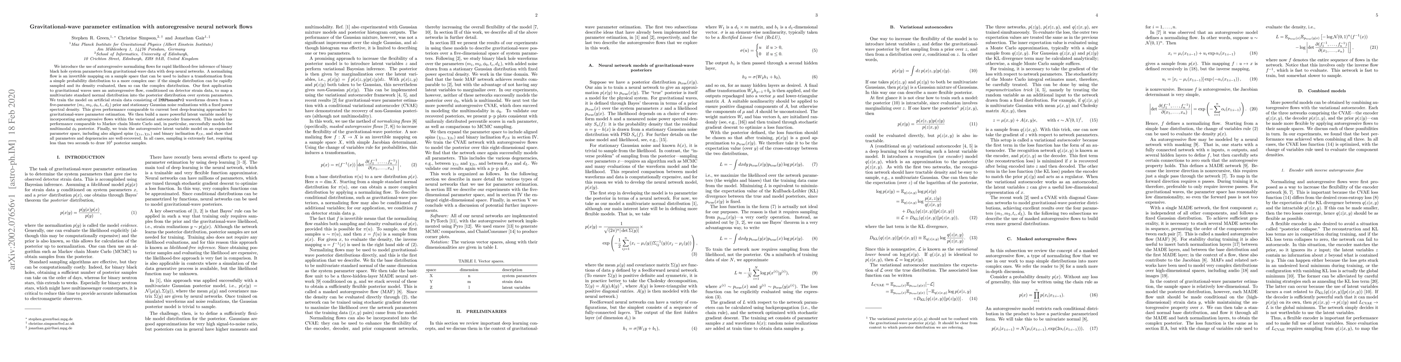 This paper proposes using autoregressive normalizing flows for efficient gravitational-wave parameter estimation from binary black hole data. It demonstrates that these flows can rapidly infer parameters comparable to current best methods, and when integrated into a variational autoencoder framework, they achieve performance similar to Markov chain Monte Carlo, effectively modeling complex posterior distributions.