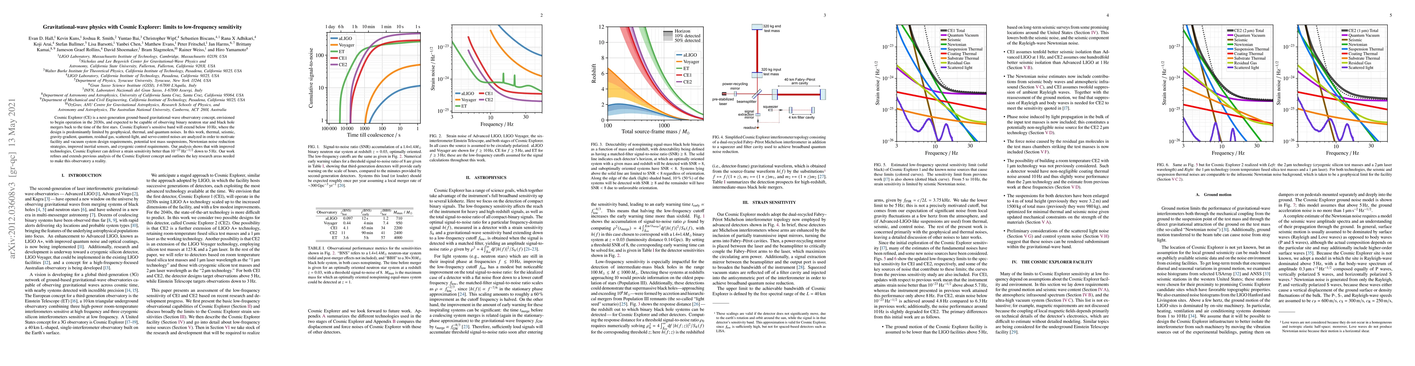 The Cosmic Explorer observatory concept may reach strain sensitivity better than $10^{-23}/ m{Hz}^{1/2}$ at 5 Hz with improved technologies, overcoming its current limitations in low-frequency sensitivity.