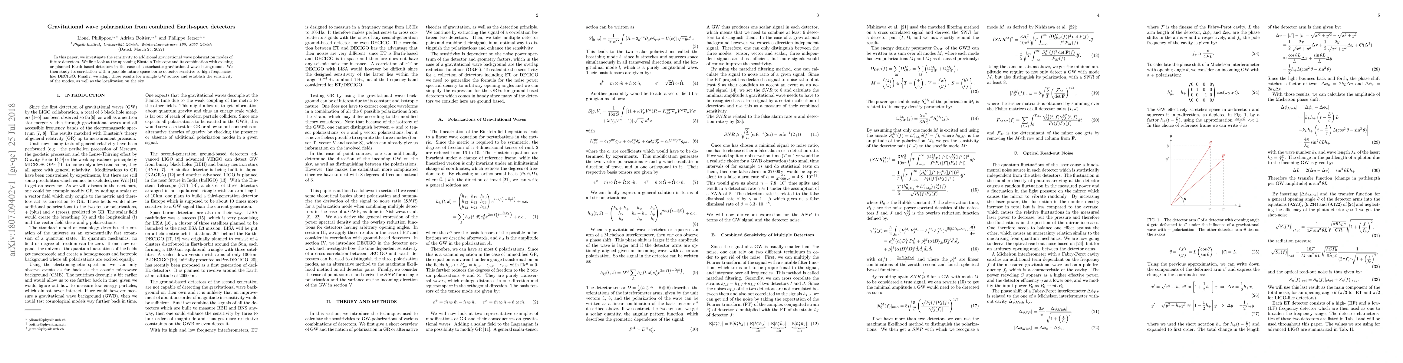 This paper examines the sensitivity of future gravitational wave detectors, including the Einstein Telescope, to additional gravitational wave polarization modes, and assesses their combined detection capabilities with a potential space-based detector like DECIGO, focusing on both stochastic backgrounds and single source localization.