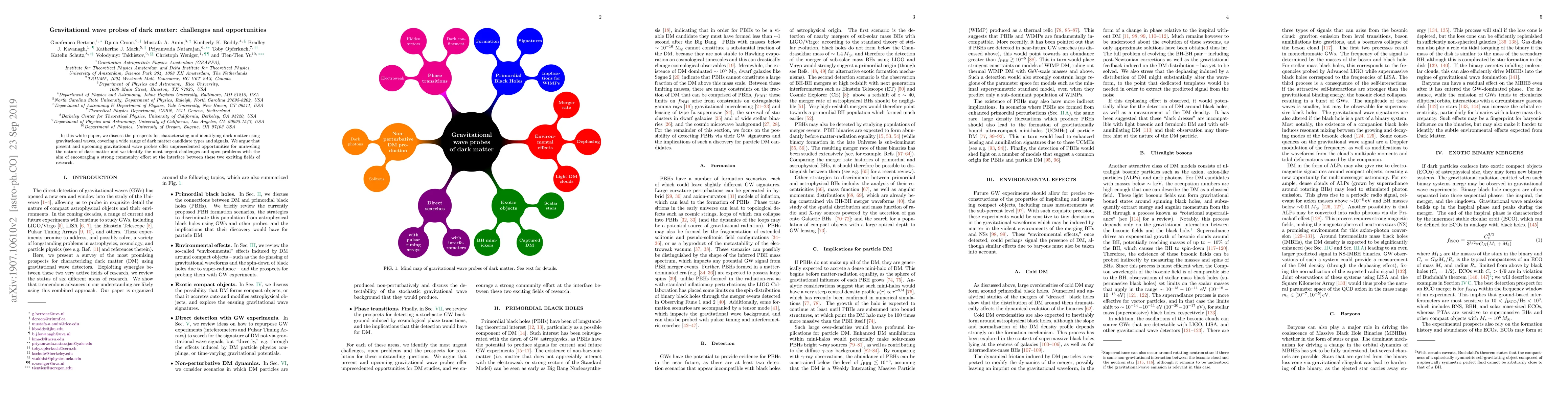 This paper explores the potential of gravitational wave detection to characterize and identify dark matter, highlighting both opportunities and challenges. It emphasizes the need for collaborative efforts to address open problems and maximize the capabilities of current and future gravitational wave observatories.