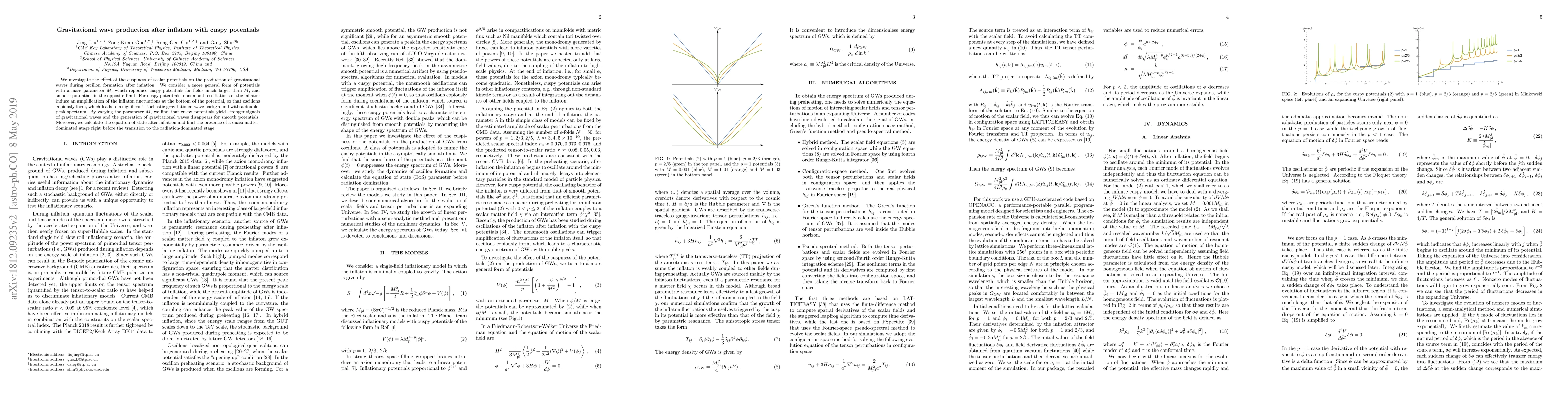 This paper explores how cuspy scalar potentials influence gravitational wave production via oscillon formation post-inflation. It finds that cuspy potentials significantly amplify gravitational waves compared to smooth potentials, resulting in a double-peak spectrum and a quasi matter-dominated stage before radiation domination.