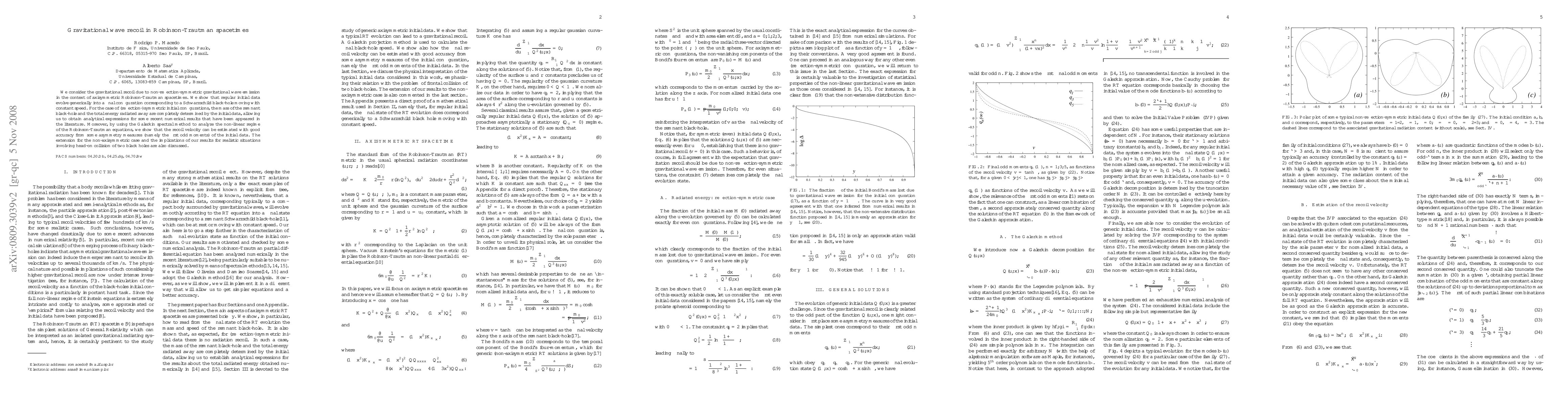This paper investigates gravitational recoil from asymmetric gravitational wave emission in Robinson-Trautman spacetimes, demonstrating that asymmetric initial data leads to a Schwarzschild black hole moving at constant velocity. Analytical expressions for symmetric initial configurations' remnant mass and radiated energy are derived, and the recoil velocity is estimated using the first odd moments of initial data asymmetry.