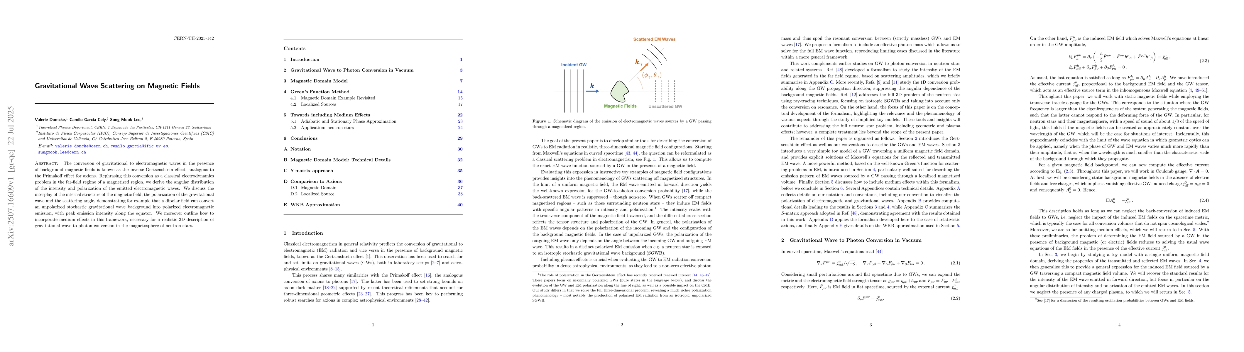 The research employs an effective-current formalism to analyze gravitational wave (GW) conversion into electromagnetic (EM) waves in magnetized media, extending previous domain-model and S-matrix treatments to accommodate realistic three-dimensional geometries and arbitrary photon dispersions.
