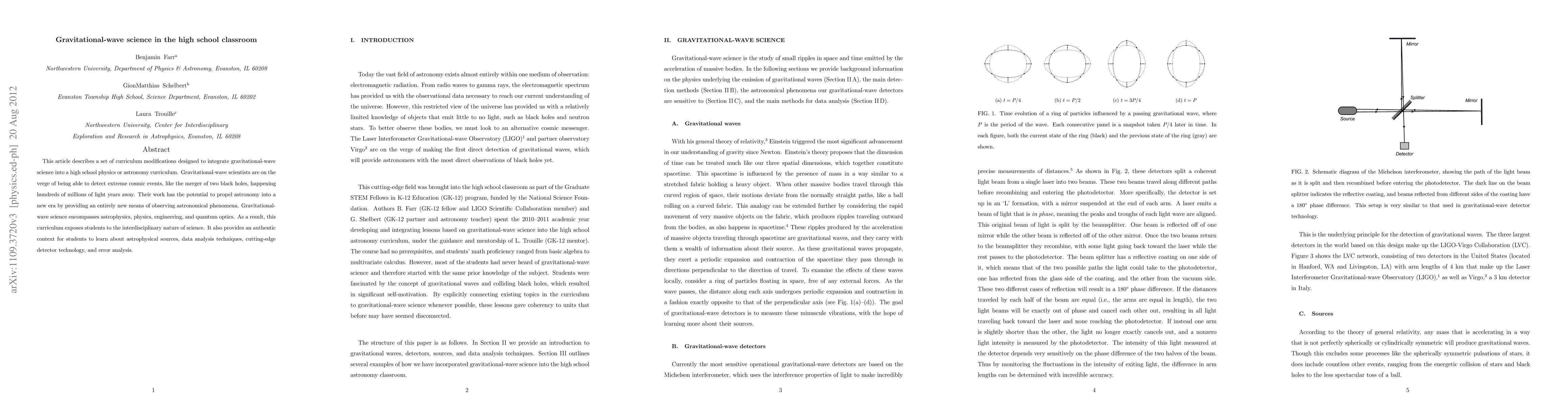 This article presents curriculum modifications to integrate gravitational-wave science into high school physics or astronomy, exposing students to interdisciplinary science and authentic astrophysical data analysis and detector technology.