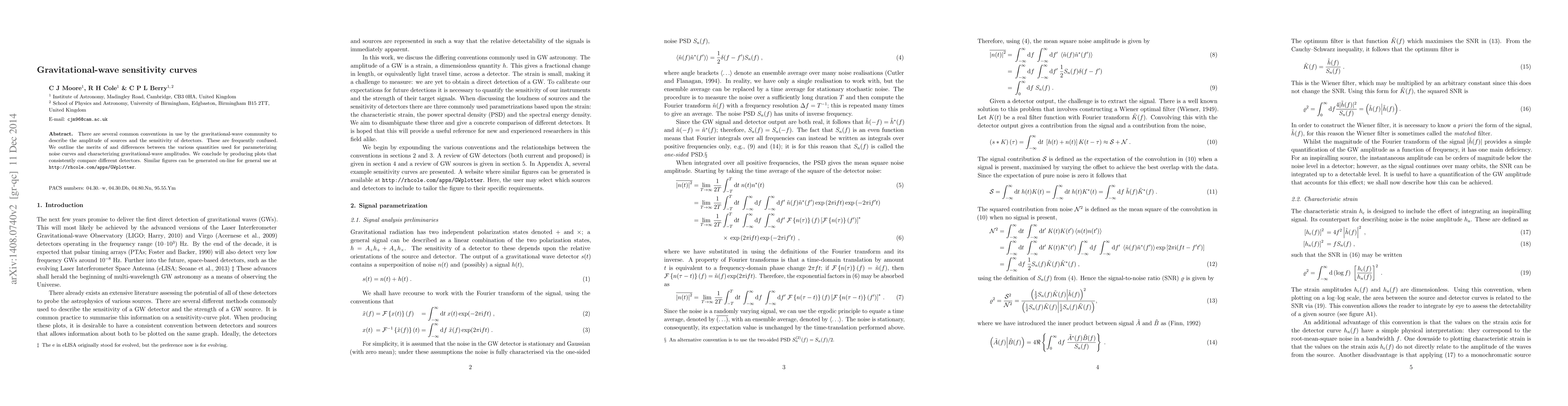 This paper clarifies common conventions for describing gravitational-wave source amplitudes and detector sensitivities, often misunderstood in the community. It presents a comparative analysis of different parameterization methods and provides online tools for generating consistent plots of various detectors' sensitivities.
