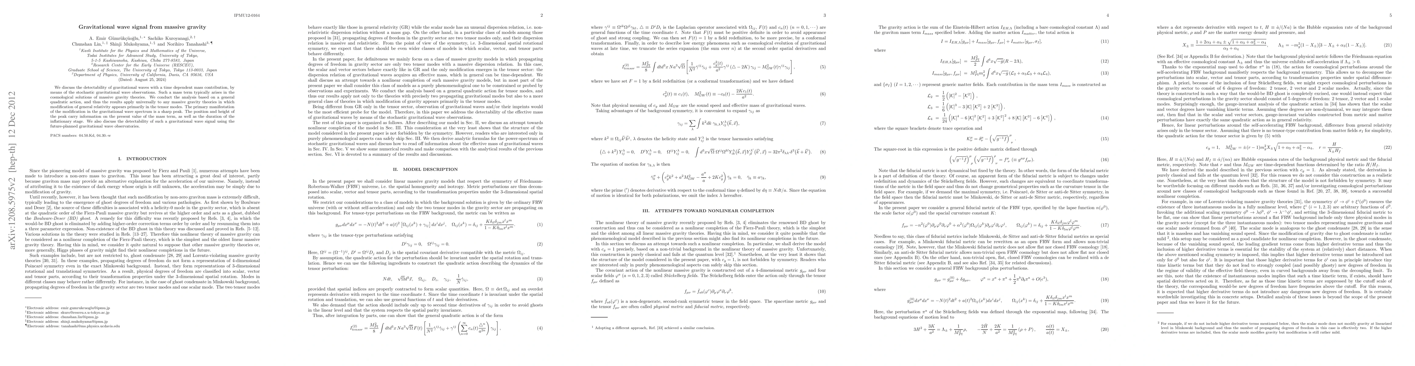 This paper investigates the detectability of gravitational waves with a time-dependent mass contribution in massive gravity theories, finding a sharp peak in the gravitational wave spectrum that reveals information about the mass term and inflationary duration. Future gravitational wave observatories may be able to detect these signals.