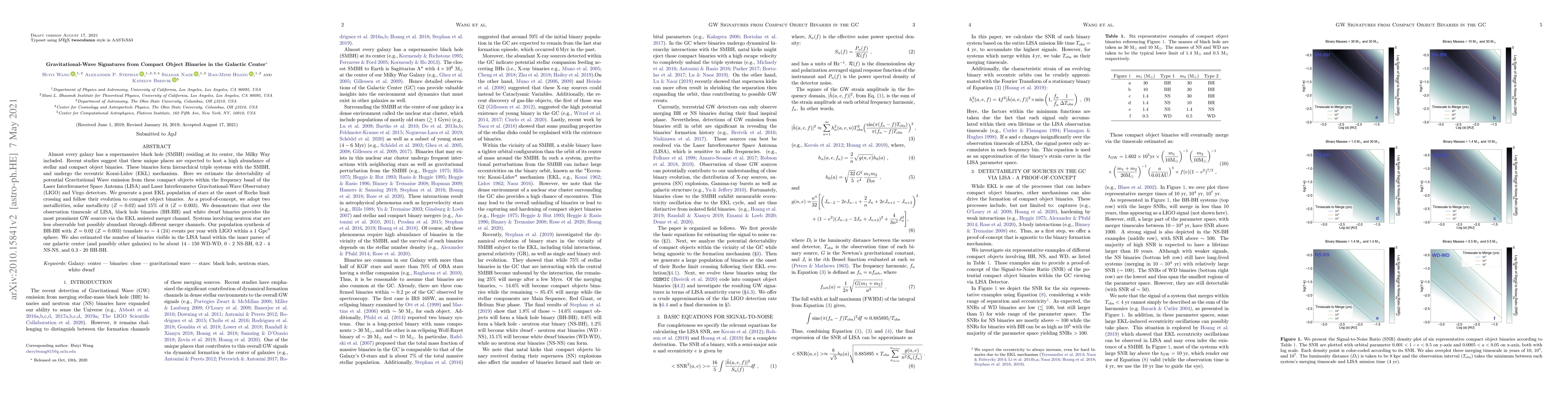 This paper investigates gravitational-wave emissions from compact object binaries in the Galactic Center's vicinity, focusing on the Laser Interferometer Space Antenna (LISA) and LIGO/Virgo detection potential. The study predicts significant LISA-observable black hole binaries and white dwarf binaries, while neutron star systems are less prominent but potentially numerous via alternative merger pathways.