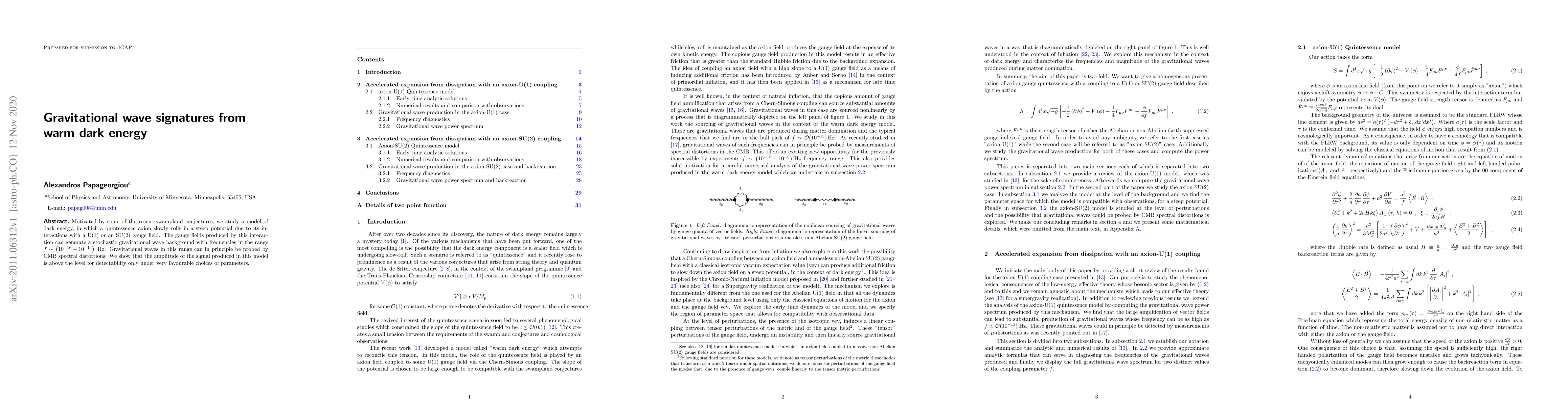 Motivated by some of the recent swampland conjectures, we study a model of dark energy, in which a quintessence axion slowly rolls in a steep potential due to its interactions with a U(1) or an SU(2) gauge field. The gauge fields produced by this interaction can generate a stochastic gravitational wave background with frequencies in the range $f \sim \left(10^{-16} - 10^{-14}\right)\; {\rm Hz}$. Gravitational waves in this range can in principle be probed by CMB spectral distortions. We show that the amplitude of the signal produced in this model is above the level for detectability only under very favourable choices of parameters.