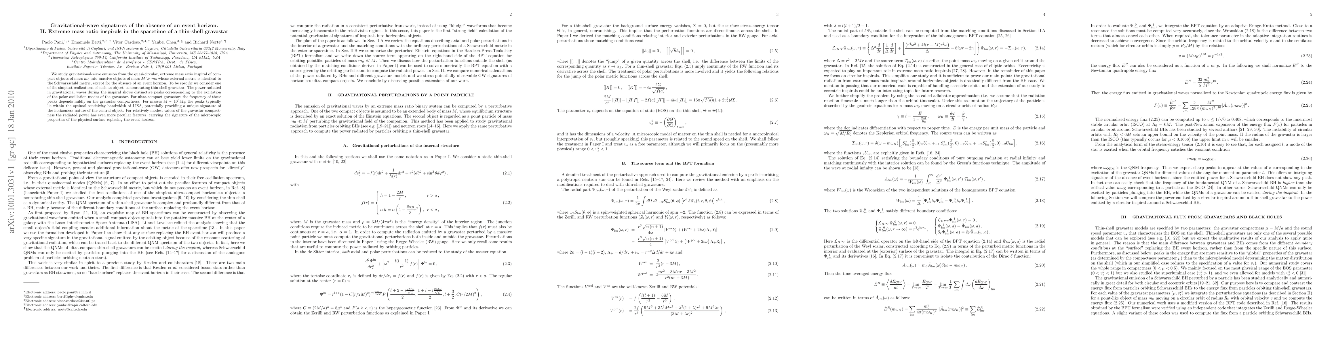We study gravitational-wave emission from the quasi-circular, extreme mass ratio inspiral of compact objects of mass m0 into massive objects of mass M>>m0 whose external metric is identical to the Schwarzschild metric, except for the absence of an event horizon. To be specific we consider one of the simplest realizations of such an object: a nonrotating thin-shell gravastar. The power radiated in gravitational waves during the inspiral shows distinctive peaks corresponding to the excitation of the polar oscillation modes of the gravastar. For ultra-compact gravastars the frequency of these peaks depends mildly on the gravastar compactness. For masses M~10^6Msun the peaks typically lie within the optimal sensitivity bandwidth of LISA, potentially providing a unique signature of the horizonless nature of the central object. For relatively modest values of the gravastar compactness the radiated power has even more peculiar features, carrying the signature of the microscopic properties of the physical surface replacing the event horizon.