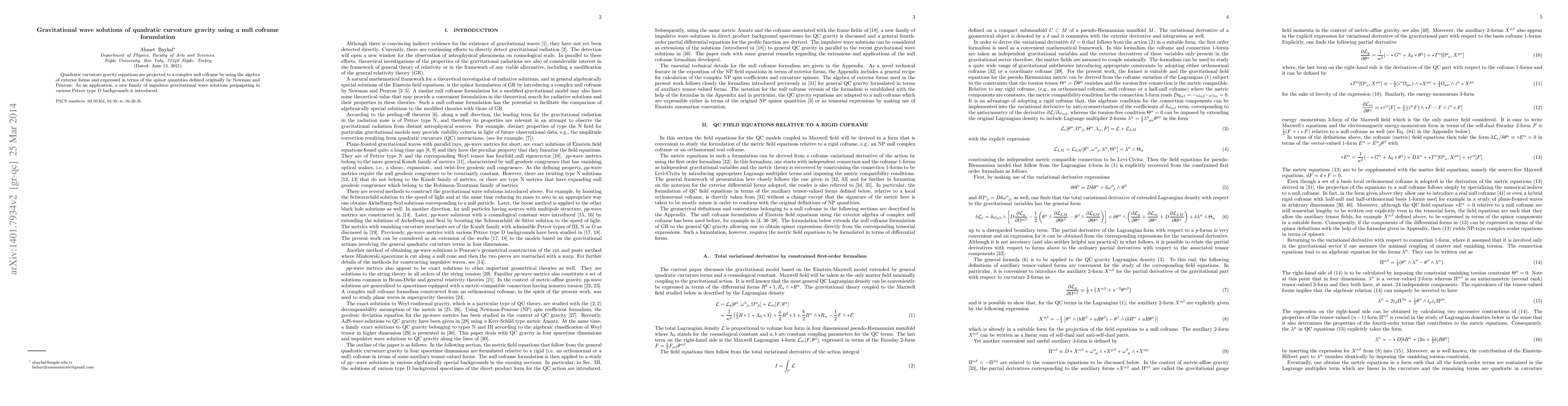 This paper projects quadratic curvature gravity equations into a complex null coframe using exterior forms and spinor quantities, introducing a new family of impulsive gravitational wave solutions in various type D backgrounds.