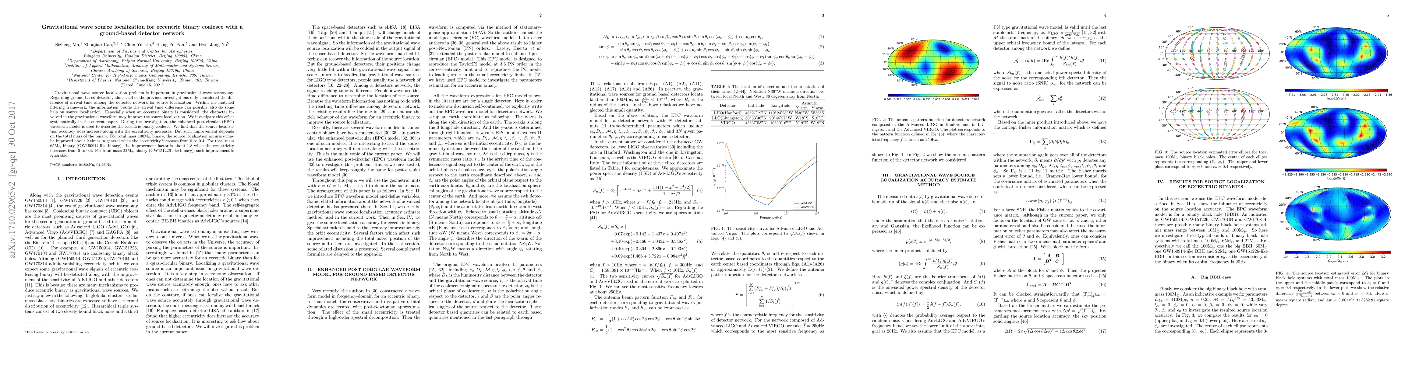 Gravitational wave source localization problem is important in gravitational wave astronomy. Regarding ground-based detector, almost all of the previous investigations only considered the difference of arrival time among the detector network for source localization. Within the matched filtering framework, the information beside the arrival time difference can possibly also do some help on source localization. Especially when an eccentric binary is considered, the character involved in the gravitational waveform may improve the source localization. We investigate this effect systematically in the current paper. During the investigation, the enhanced post-circular (EPC) waveform model is used to describe the eccentric binary coalesce. We find that the source localization accuracy does increase along with the eccentricity increases. But such improvement depends on the total mass of the binary. For total mass 100M${}_\odot$ binary, the source localization accuracy may be improved about 2 times in general when the eccentricity increases from 0 to 0.4. For total mass 65M${}_\odot$ binary (GW150914-like binary), the improvement factor is about 1.3 when the eccentricity increases from 0 to 0.4. For total mass 22M${}_\odot$ binary (GW151226-like binary), such improvement is ignorable.