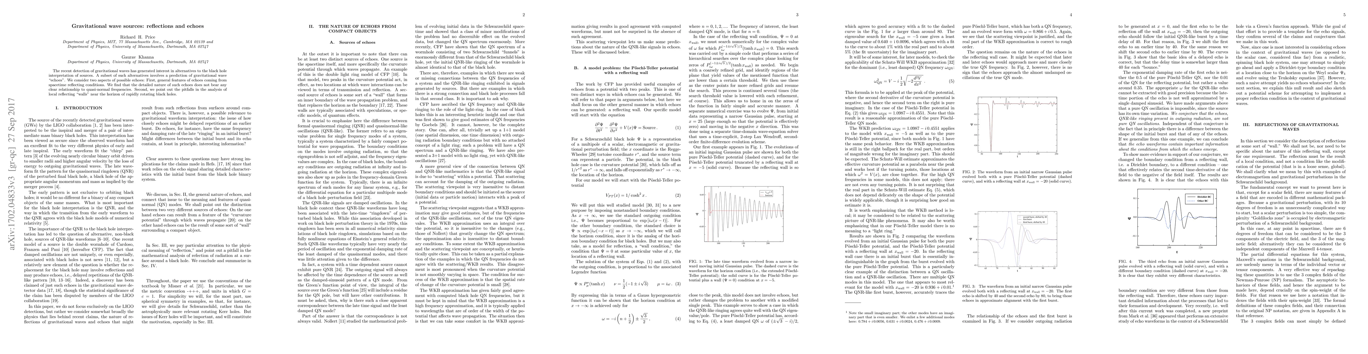 The recent detection of gravitational waves has generated interest in alternatives to the black hole interpretation of sources. One set of such alternatives involves a prediction of gravitational wave "echoes". We consider two aspects of possible echoes: First, general features of echoes coming from spacetime reflecting conditions. We find that the detailed nature of such echoes does not bear any clear relationship to quasi-normal frequencies. Second, we point out the pitfalls in the analysis of local reflecting "walls" near the horizon of rapidly rotating black holes.