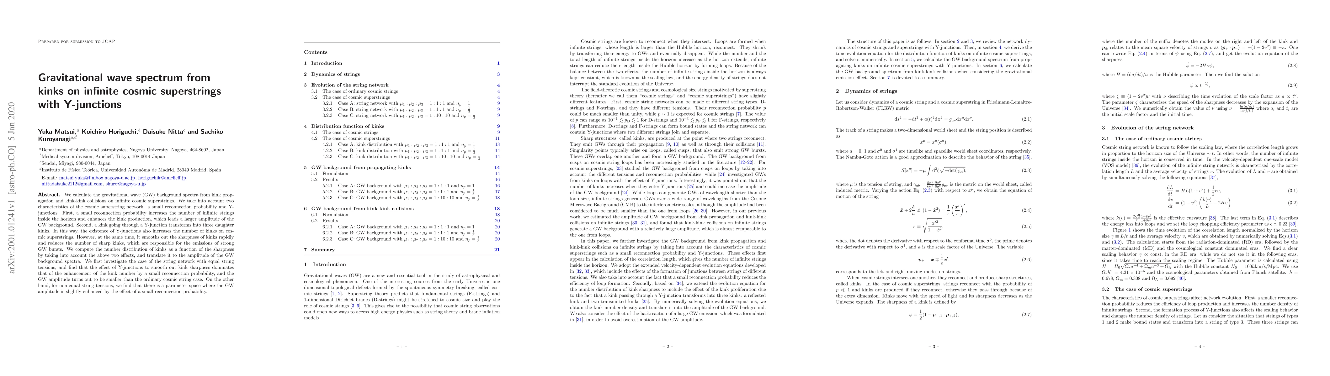 This paper investigates the gravitational wave background spectra generated by kinks on infinite cosmic superstrings, considering the effects of a small reconnection probability and Y-junctions. While the small reconnection probability increases kink production and enhances GW amplitude, Y-junctions transform kinks into multiple kinks but also smooth them out, reducing strong GW bursts. For equal string tensions, the smoothing effect dominates, decreasing GW amplitude, while for non-equal tensions, a small reconnection probability can slightly enhance GW amplitude in certain parameter spaces.