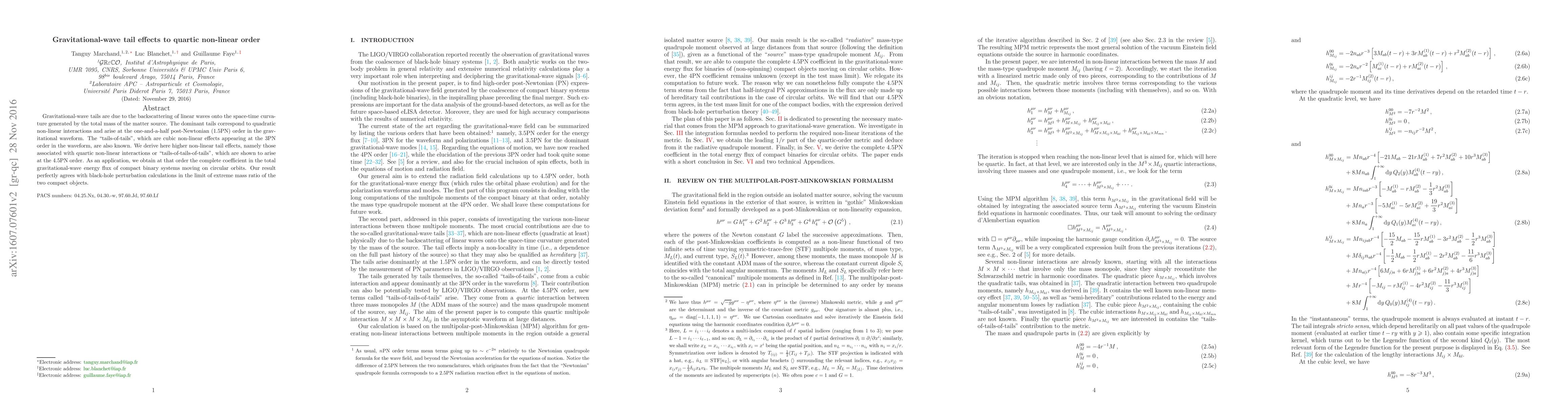 This paper derives gravitational-wave tail effects to quartic non-linear order, showing they arise at the 4.5PN order. It provides the complete coefficient for the total gravitational-wave energy flux of compact binary systems, aligning with black-hole perturbation calculations.