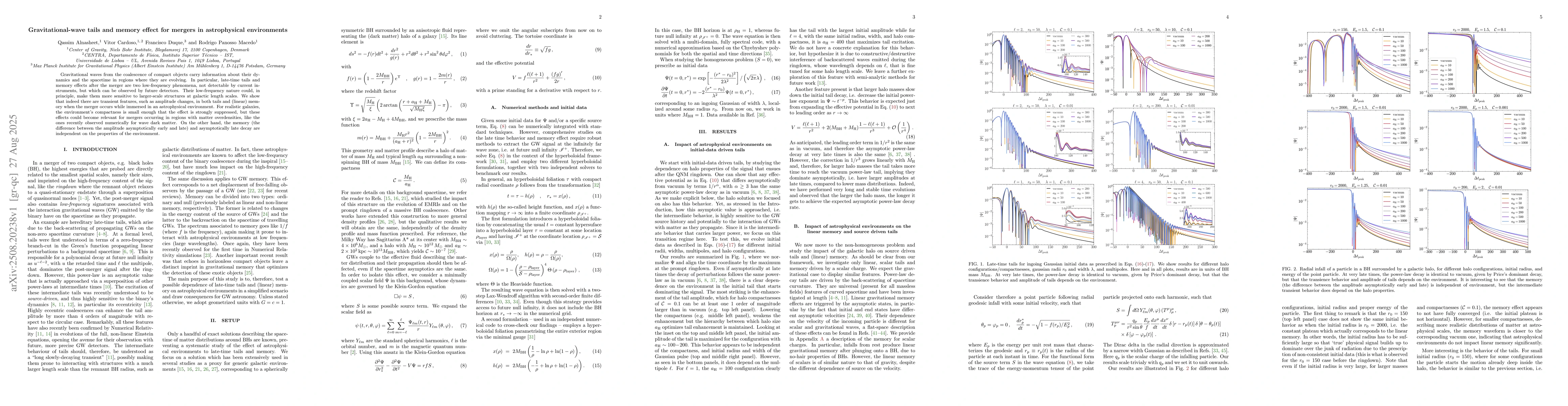 Gravitational waves from the coalescence of compact objects carry information about their dynamics and the spacetime in regions where they are evolving. In particular, late-time tails and memory effects after the merger are two low-frequency phenomena, not detectable by current instruments, but which can be observed by future detectors. Their low-frequency nature could, in principle, make them more sensitive to larger-scale structures at galactic length scales. We show that indeed there are transient features, such as amplitude changes, in both tails and (linear) memory when the merger occurs while immersed in an astrophysical environment. For realistic galaxies, the environment's compactness is small enough that the effect is strongly suppressed, but these effects could become relevant for mergers occurring in regions with matter overdensities, like the ones recently observed numerically for wave dark matter. On the other hand, the memory (the difference between the amplitude asymptotically early and late) and asymptotically late decay are independent on the properties of the environment.