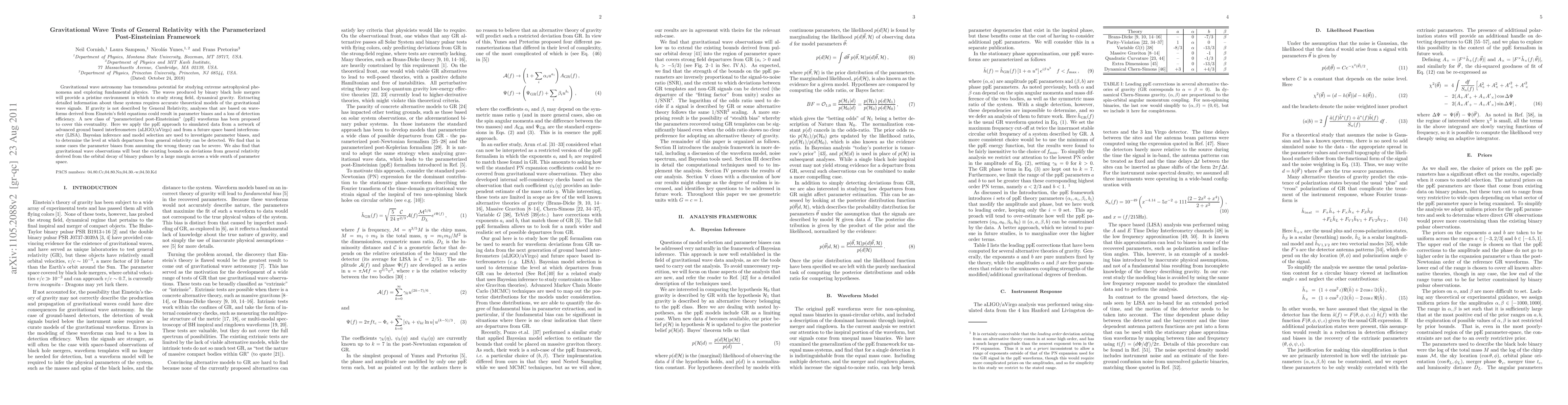 This paper explores gravitational wave detections using parameterized post-Einsteinian (ppE) waveforms to test General Relativity, finding significant parameter biases if the wrong theory is assumed, and demonstrating that gravitational wave observations will vastly improve constraints on deviations from general relativity.
