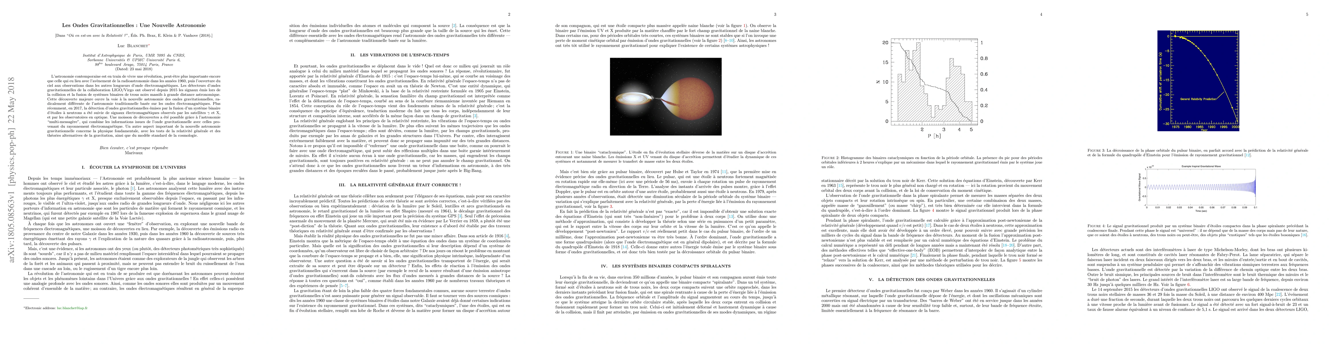 Contemporary astronomy is undergoing a revolution, perhaps even more important than that which took place with the advent of radioastronomy in the 1960s, and then the opening of the sky to observations in the other electromagnetic wavelengths. The gravitational wave detectors of the LIGO/Virgo collaboration have observed since 2015 the signals emitted during the collision and merger of binary systems of massive black holes at a large astronomical distance. This major discovery opens the way to the new astronomy of gravitational waves, drastically different from the traditional astronomy based on electromagnetic waves. More recently, in 2017, the detection of gravitational waves emitted by the inspiral and merger of a binary system of neutron stars has been followed by electromagnetic signals observed by the $\gamma$ and X satellites, and by optical telescopes. A harvest of discoveries has been possible thanks to the multi-messenger astronomy, which combines the information from the gravitational wave with that from electromagnetic waves. Another important aspect of the new gravitational astronomy concerns fundamental physics, with the tests of general relativity and alternative theories of gravitation, as well as the standard model of cosmology.