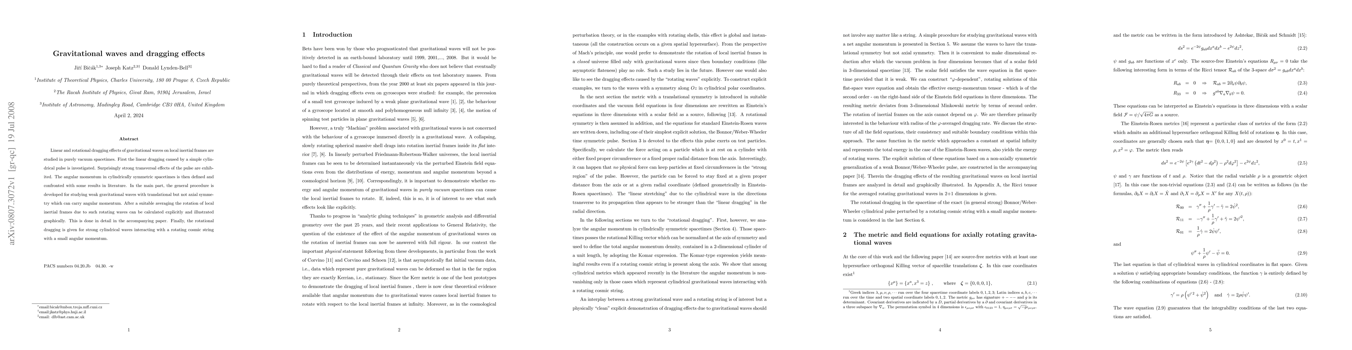 This paper investigates linear and rotational dragging effects of gravitational waves in vacuum spacetimes, focusing on cylindrical pulses and their transversal effects. It develops a general procedure for analyzing weak gravitational waves with angular momentum and illustrates the rotation of local inertial frames due to such waves, concluding with an examination of interactions between strong cylindrical waves and rotating cosmic strings.