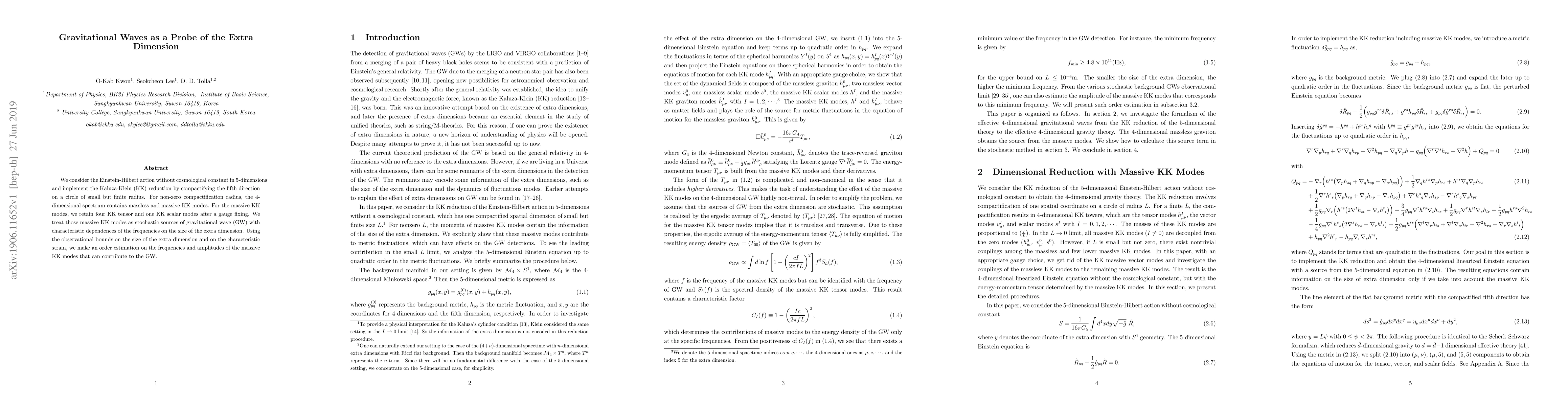 This paper explores the implications of extra dimensions on gravitational waves (GWs) by analyzing the 5-dimensional Einstein-Hilbert action and its Kaluza-Klein reduction. The study estimates the frequencies and amplitudes of massive KK modes that could generate GWs, using observational constraints on the extra dimension's size and GW strain.