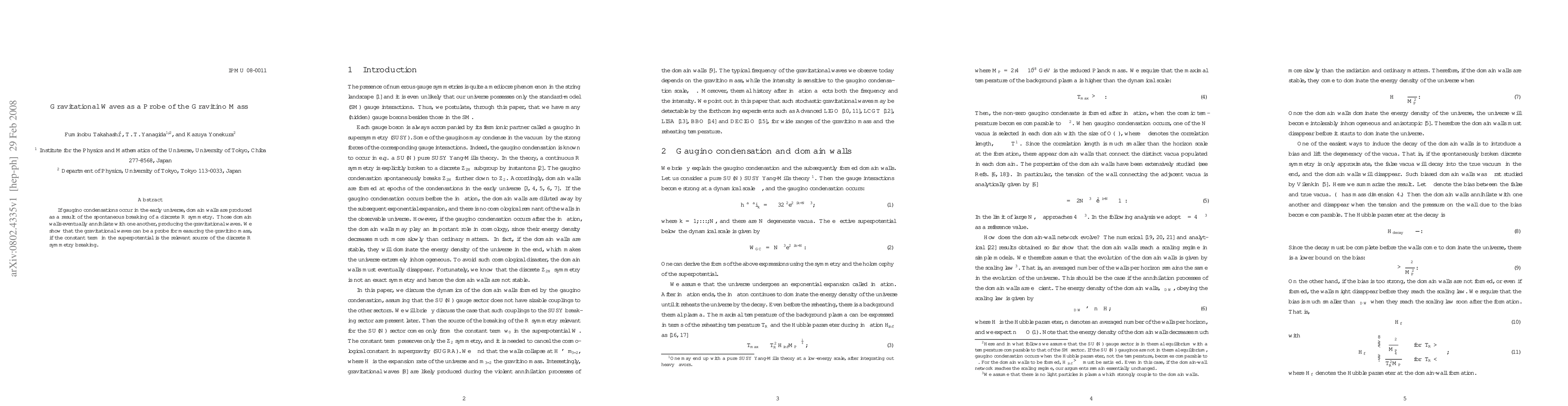 If gaugino condensations occur in the early universe, domain walls are produced as a result of the spontaneous breaking of a discrete R symmetry. Those domain walls eventually annihilate with one another, producing the gravitational waves. We show that the gravitational waves can be a probe for measuring the gravitino mass, if the constant term in the superpotential is the relevant source of the discrete R symmetry breaking.