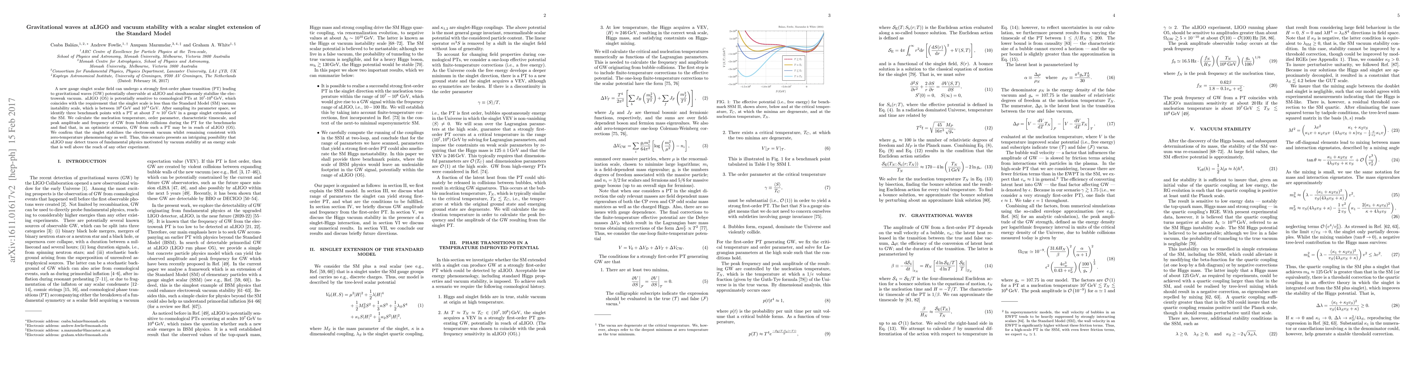This paper explores a scalar singlet extension of the Standard Model that could lead to gravitational waves detectable by aLIGO, while also stabilizing the electroweak vacuum. It identifies benchmark points where a first-order phase transition at around $10^7$ GeV could produce gravitational waves within aLIGO's sensitivity range, thus offering a potential detection of fundamental physics linked to vacuum stability.