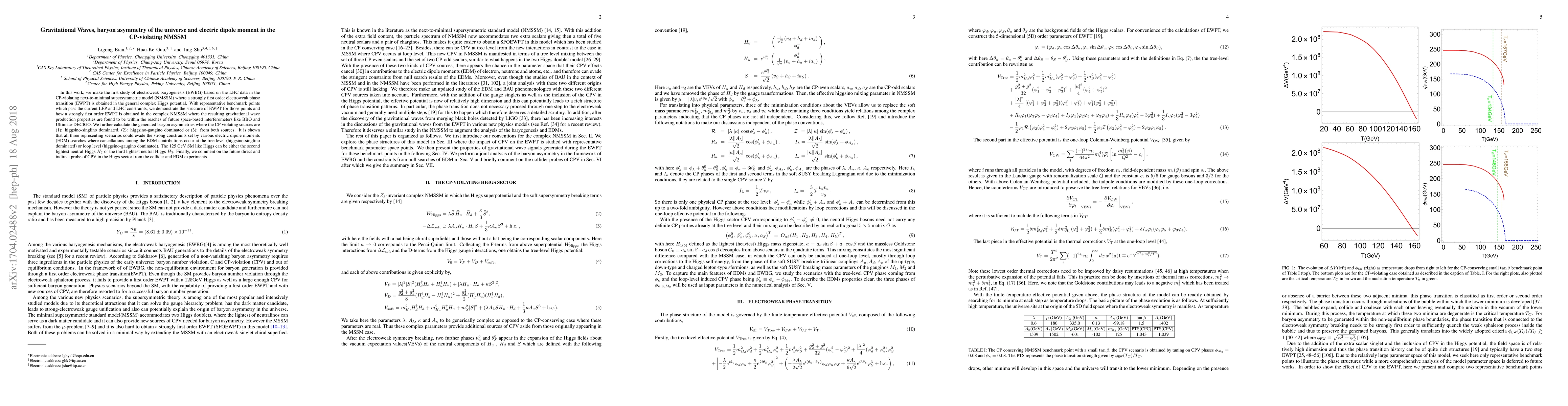 This paper explores electroweak baryogenesis in the CP-violating NMSSM, demonstrating how a strongly first-order electroweak phase transition can generate gravitational waves detectable by future space-based interferometers. It also investigates baryon asymmetry generation and shows that the model can evade electric dipole moment constraints through cancellations among contributions.