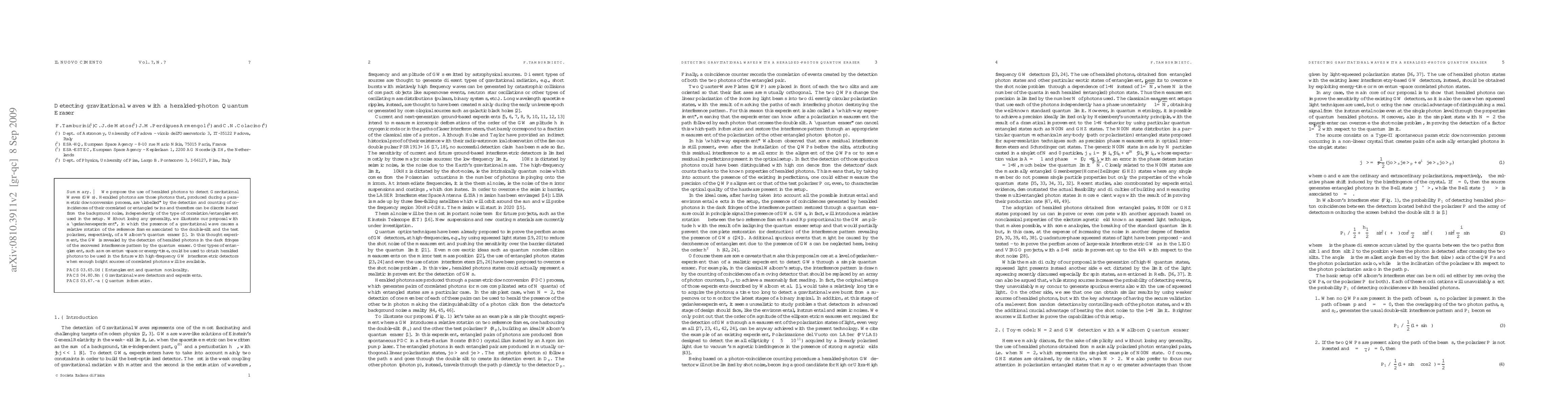 This paper proposes using heralded photons from parametric downconversion to detect gravitational waves, leveraging their ability to distinguish from background noise. The authors illustrate this with a quantum eraser experiment where a gravitational wave induces a relative rotation, detectable via the interference pattern of these photons.