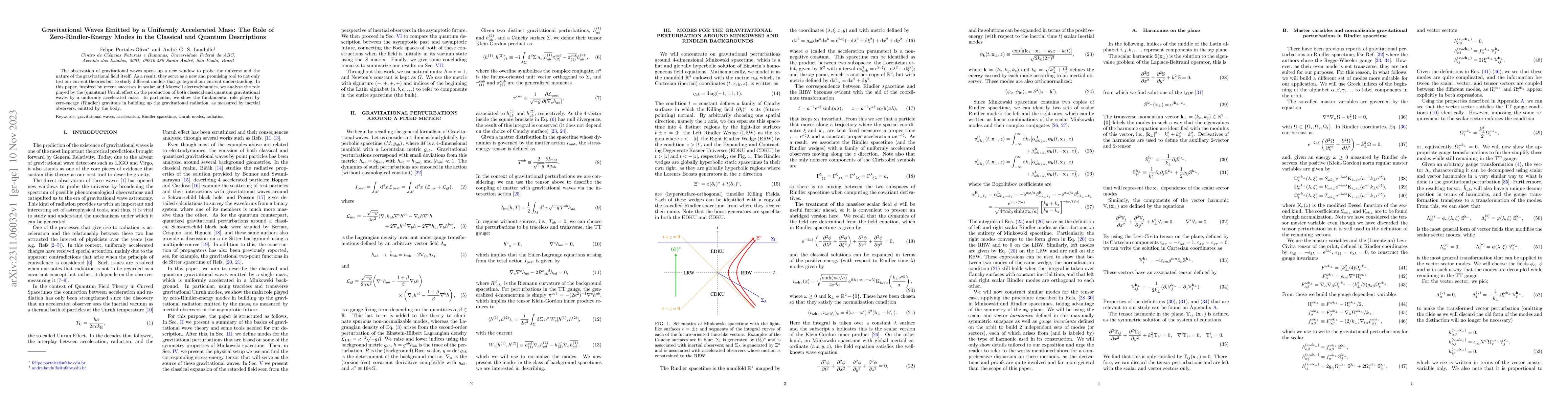This paper investigates how zero-Rindler-energy modes influence the emission of gravitational waves from a uniformly accelerated mass, exploring both classical and quantum perspectives. It highlights the significance of zero-energy gravitons in generating gravitational radiation, as observed by inertial observers, and connects these findings to the Unruh effect.