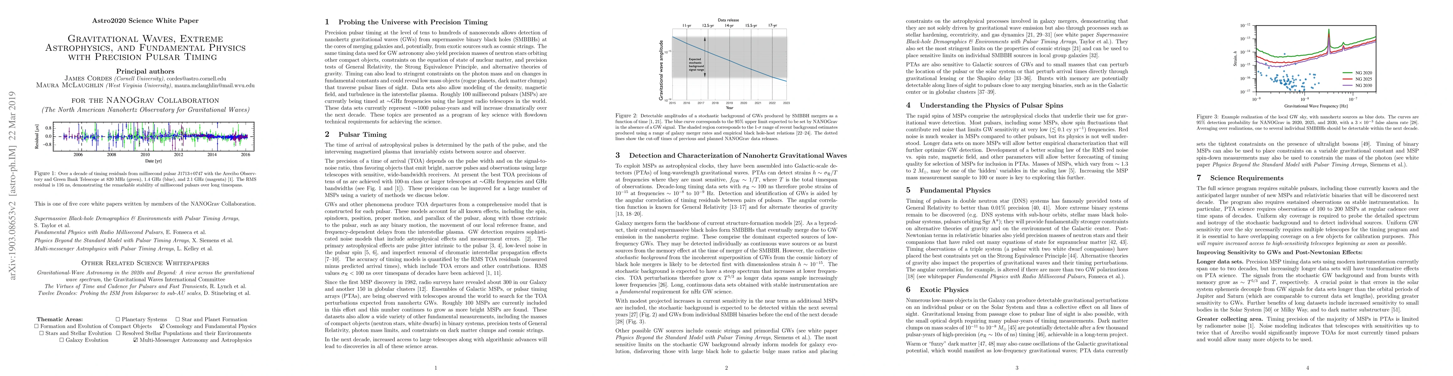 This paper outlines the potential of precision pulsar timing to detect nanohertz gravitational waves from supermassive black holes and explore fundamental physics, including tests of General Relativity and alternative gravity theories. It also discusses the use of pulsar data to constrain the photon mass, fundamental constants, and the properties of dark matter.
