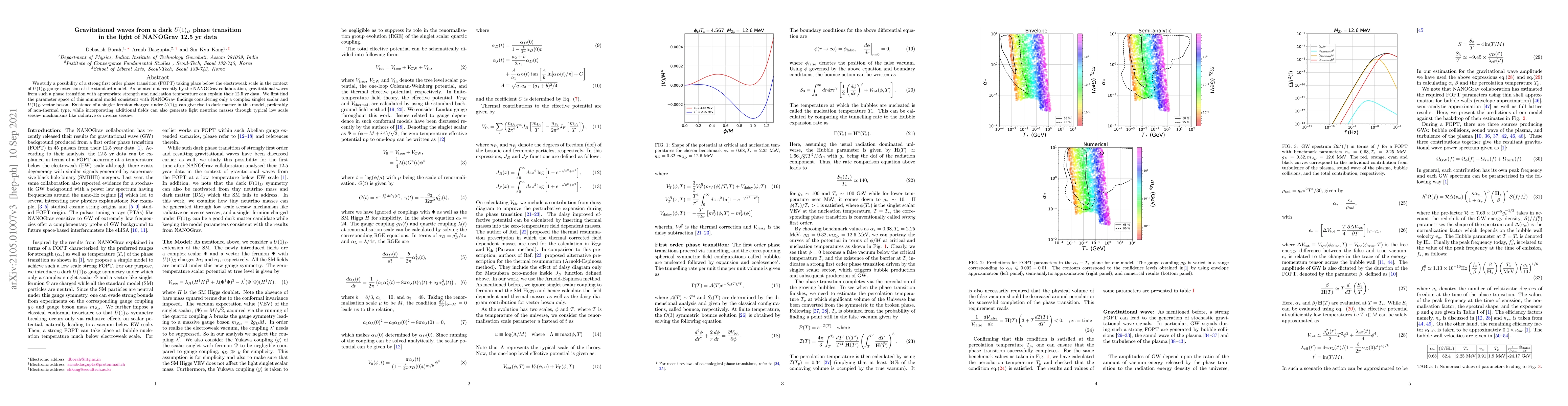 This paper explores a strong first-order phase transition in a $U(1)_D$ gauge extended standard model that could generate gravitational waves explaining NANOGrav's 12.5 yr data. The study identifies a parameter space consistent with these observations and discusses the potential for dark matter and light neutrino masses through additional fields.