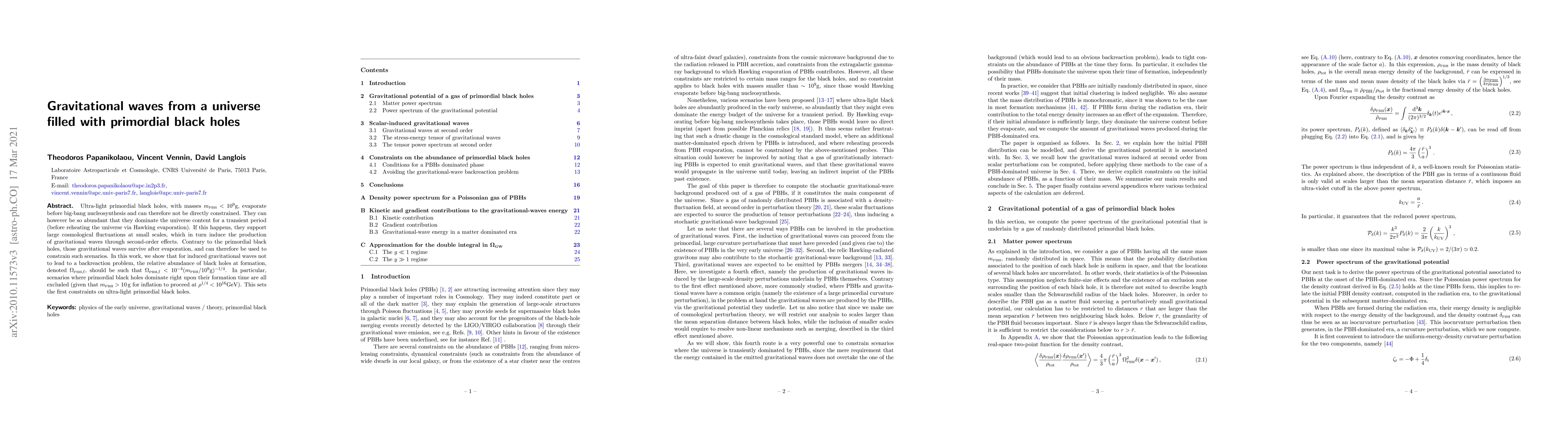 This paper investigates the gravitational waves produced by ultra-light primordial black holes that evaporate before big-bang nucleosynthesis. It sets constraints on their relative abundance to avoid a backreaction problem, finding that $ \Omega_\mathrm{PBH,f} <10^{-4}(m_\mathrm{PBH}/10^9\mathrm{g})^{-1/4}$ for $m_\mathrm{PBH}>10\, \mathrm{g}$.