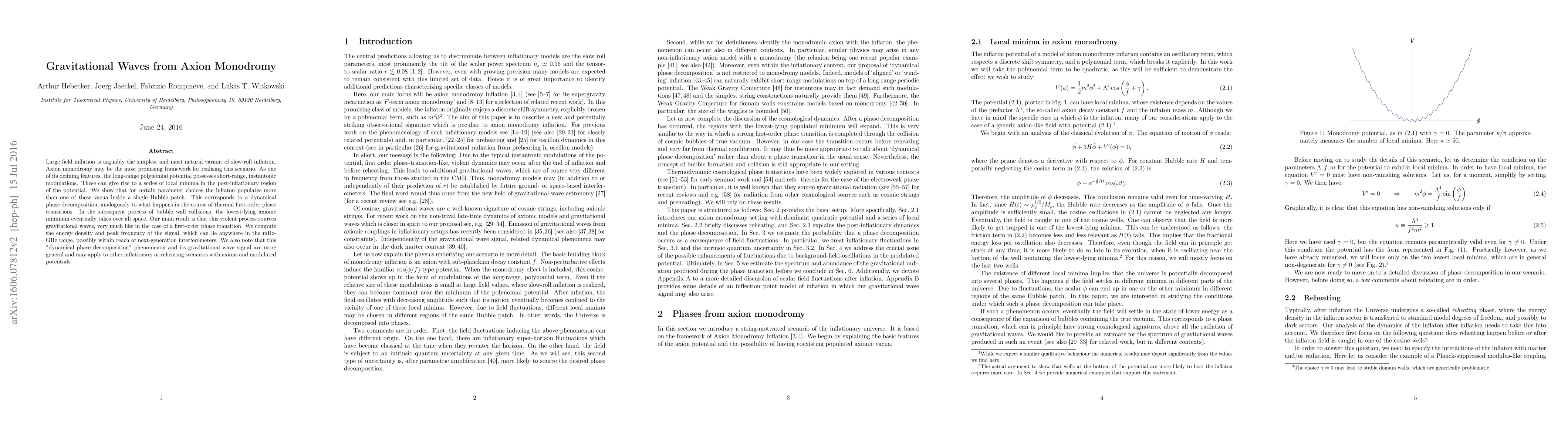Large field inflation is arguably the simplest and most natural variant of slow-roll inflation. Axion monodromy may be the most promising framework for realising this scenario. As one of its defining features, the long-range polynomial potential possesses short-range, instantonic modulations. These can give rise to a series of local minima in the post-inflationary region of the potential. We show that for certain parameter choices the inflaton populates more than one of these vacua inside a single Hubble patch. This corresponds to a dynamical phase decomposition, analogously to what happens in the course of thermal first-order phase transitions. In the subsequent process of bubble wall collisions, the lowest-lying axionic minimum eventually takes over all space. Our main result is that this violent process sources gravitational waves, very much like in the case of a first-order phase transition. We compute the energy density and peak frequency of the signal, which can lie anywhere in the mHz-GHz range, possibly within reach of next-generation interferometers. We also note that this "dynamical phase decomposition" phenomenon and its gravitational wave signal are more general and may apply to other inflationary or reheating scenarios with axions and modulated potentials.